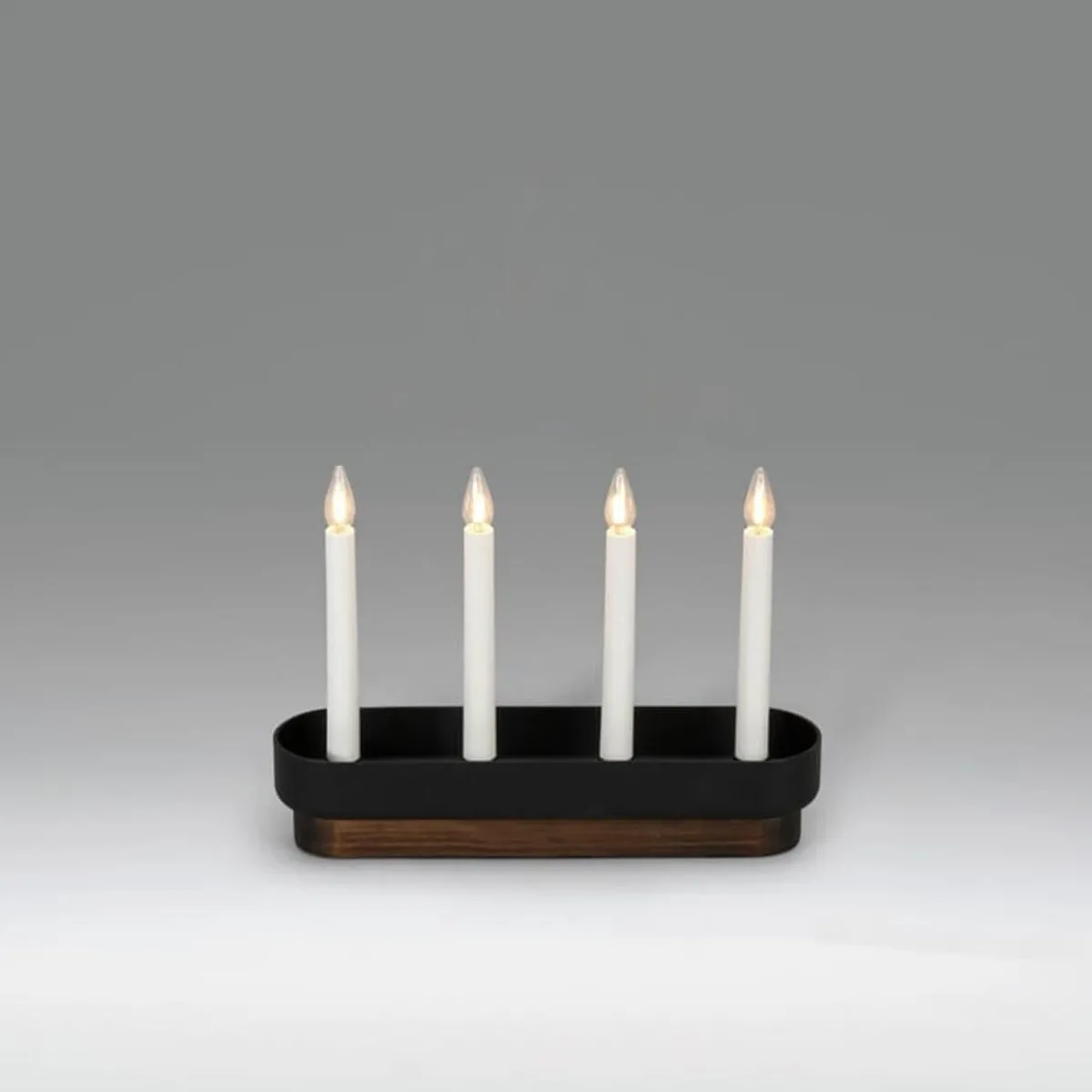 Adventstake 4 armet i plast – lakkert valnøtt. Ledning med bryter.