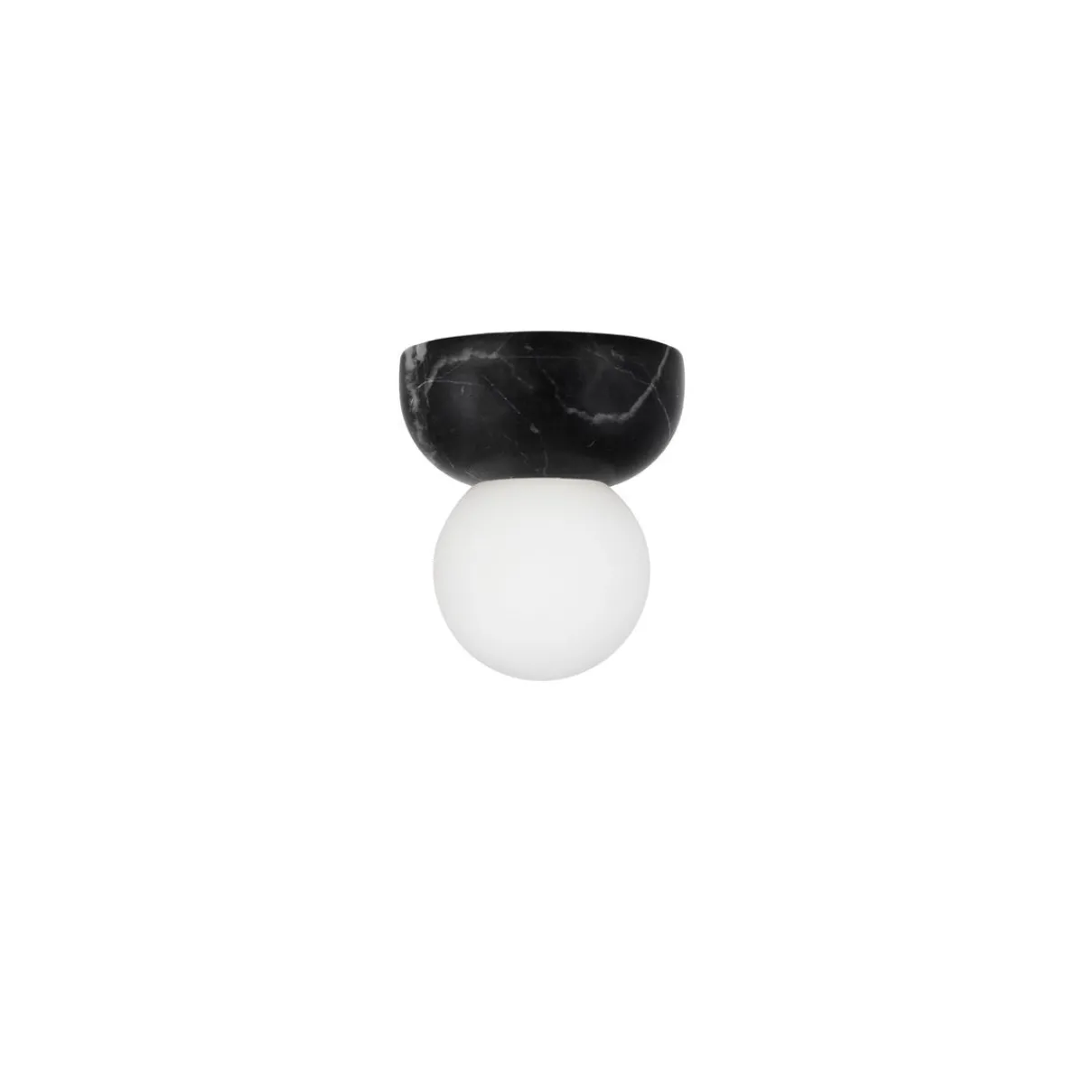 Torrano i solid marmor blir en vakker detalj i rommet. Denne lampen består av svart marmor og en glasskopp i matt hvitt glass som skrus fast.
