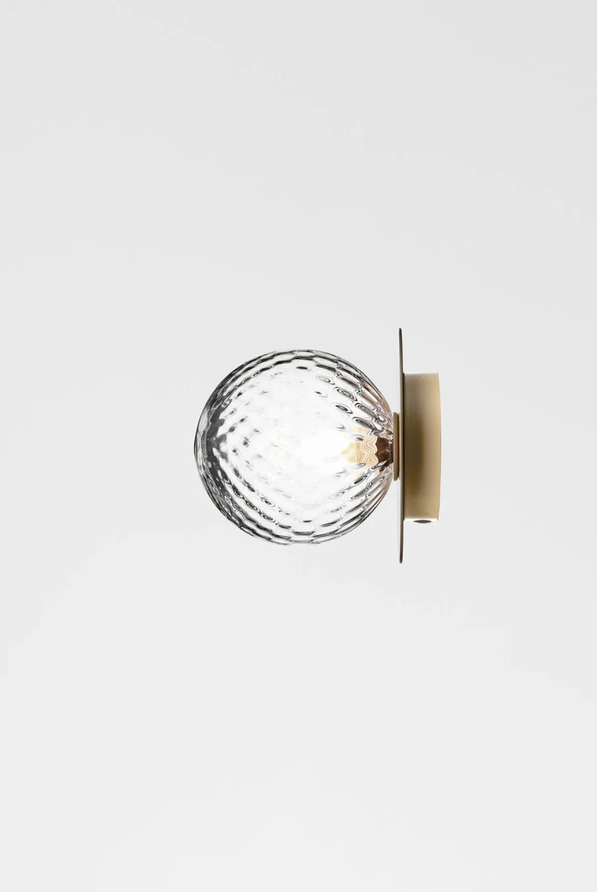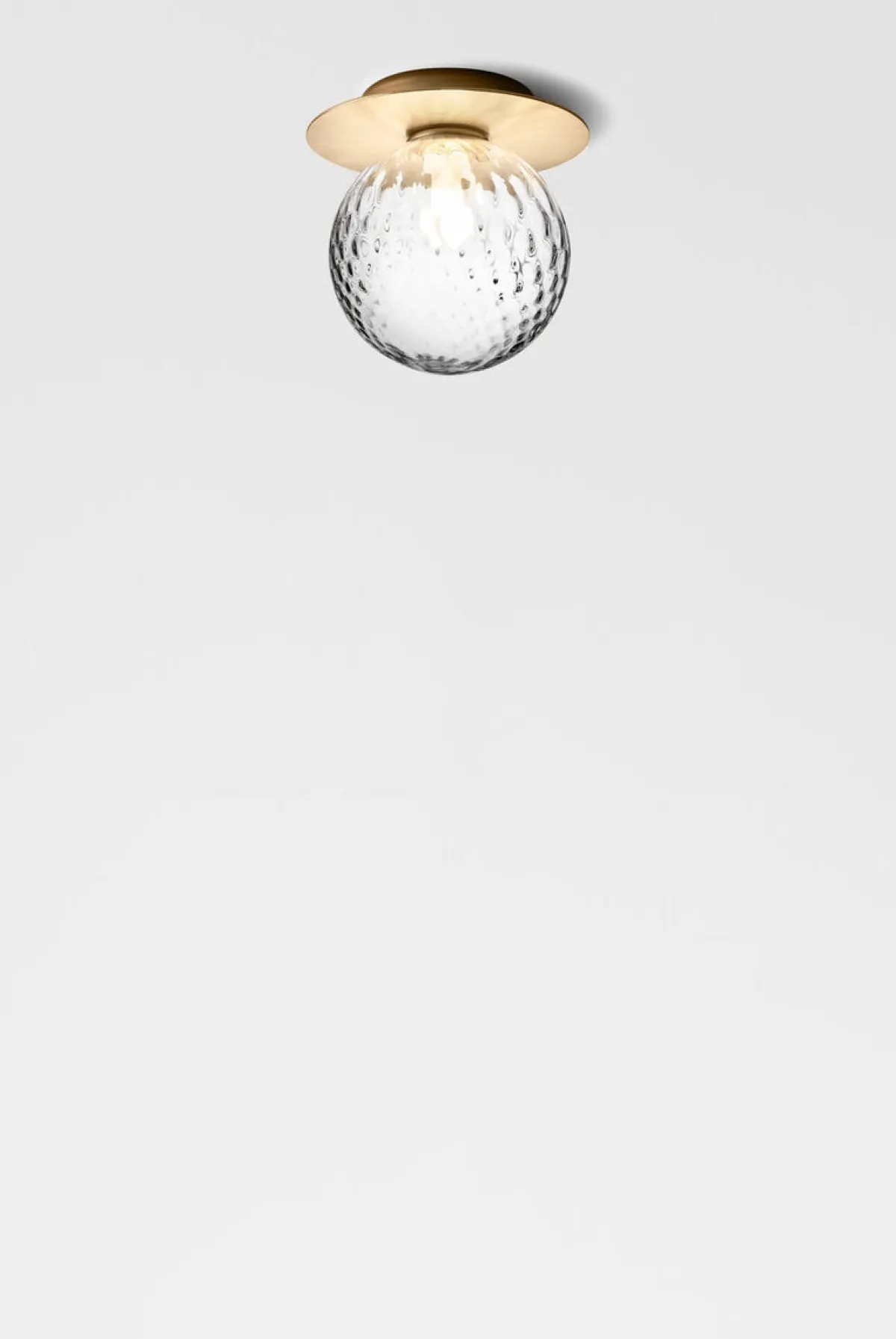 Liila 1 er en enkel lampe som ser vakker ut på veggen eller i taket. Den er enkel i sin form, og består av en tynn rund metallplate og en unik, munnblåst glasskuppel. Liila 1 passer til mindre rom, bad og til entréen.