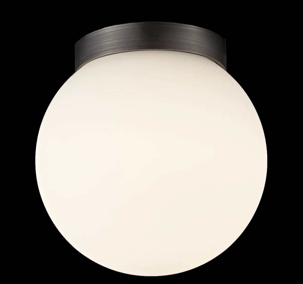 Den sfæriske glasslampen er montert på en aluminiumssokkel, som er tilgjengelig i messing og titan. Sokkelen skaper en vakker kontrast til glasskulens myke formspråk og rammer inn lampen elegant.