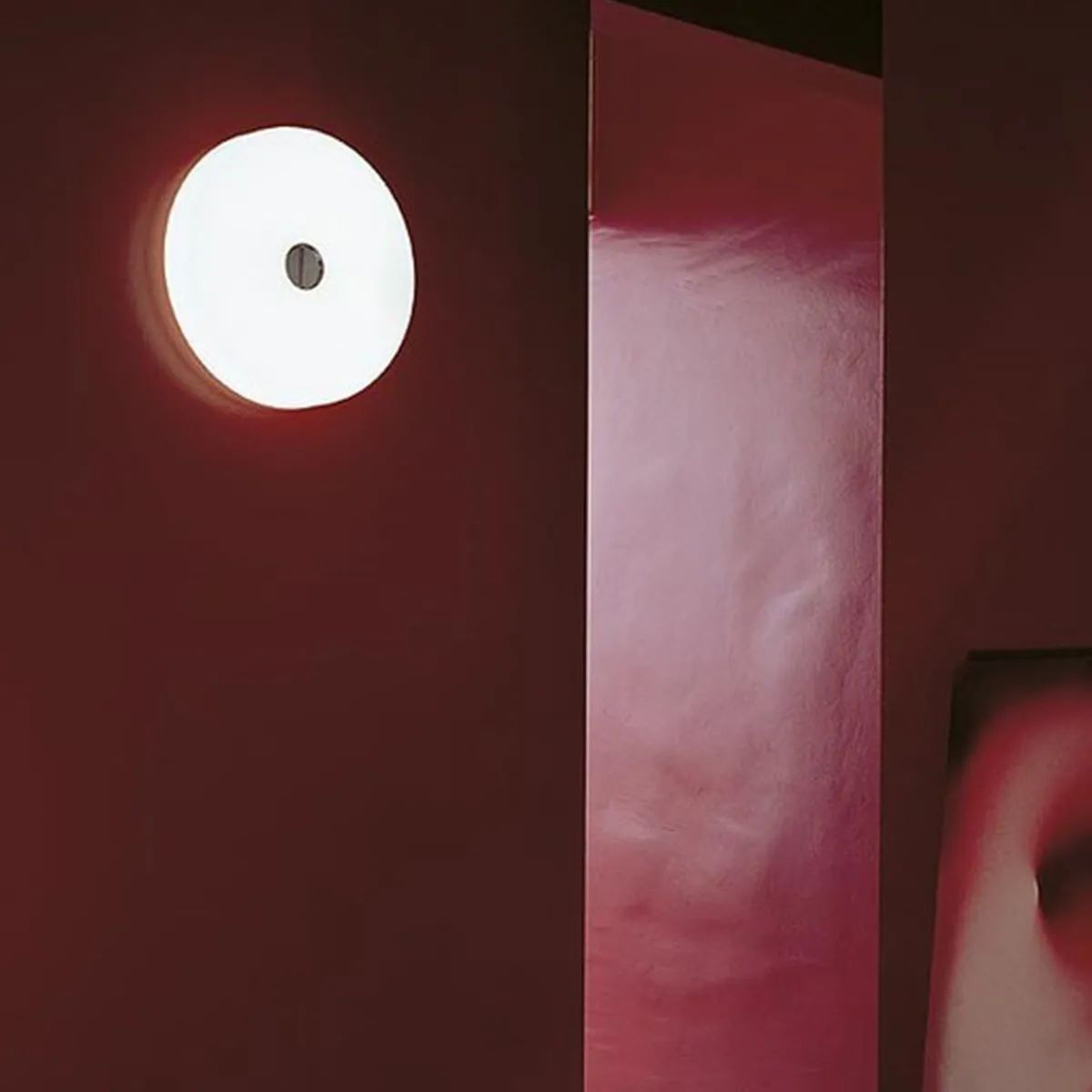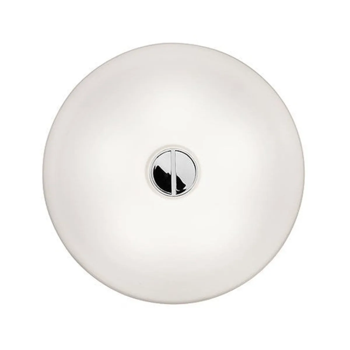 Button tak/vegglampe i glass fra italienske Flos. Denne stilrene lampen gir godt med lys og er fin å dimme. Den kan festes både i tak og på vegg, og den har Ip40 slik at den også kan brukes på baderom. Glasset er munnblåst og det er detaljer i stål og blank krom. Designet av Piero Lissono i 2004