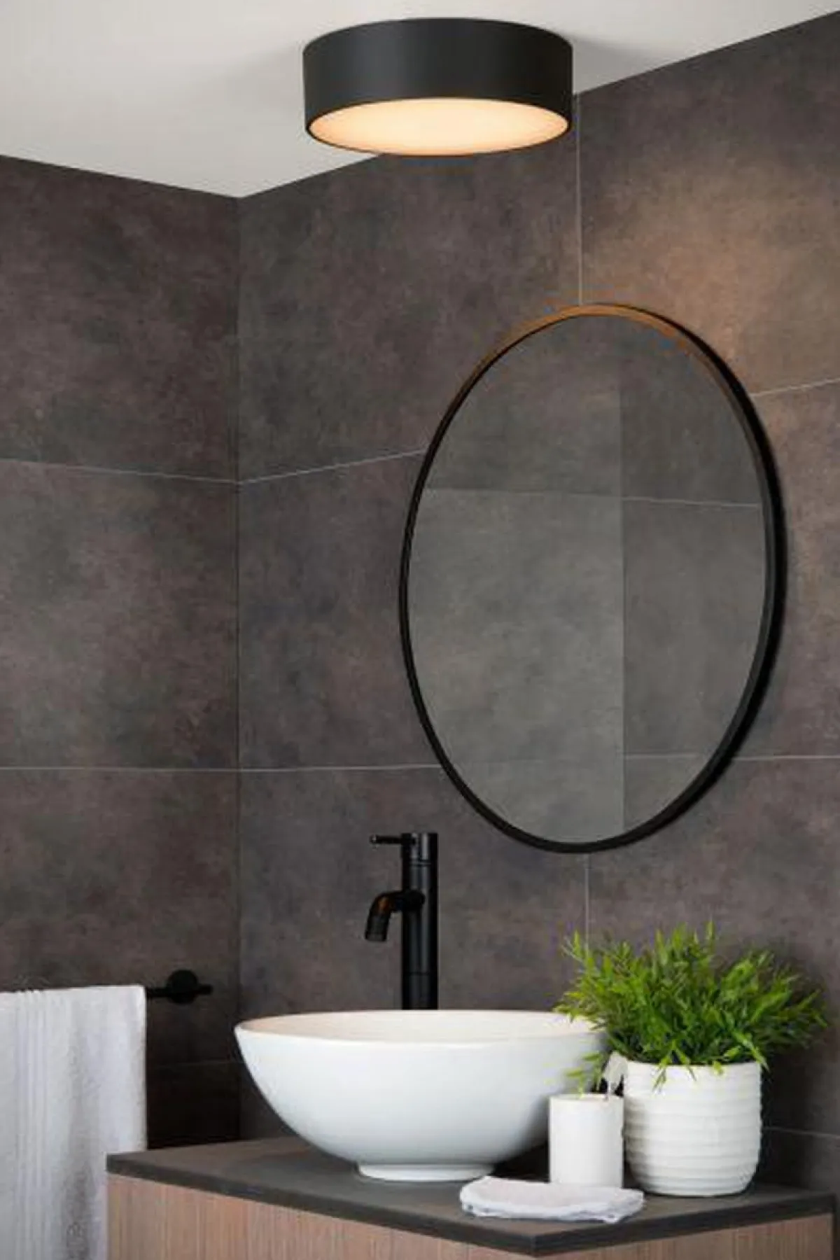 Elegant taklampe som kan brukes i baderommet. IP54 sertifisert.