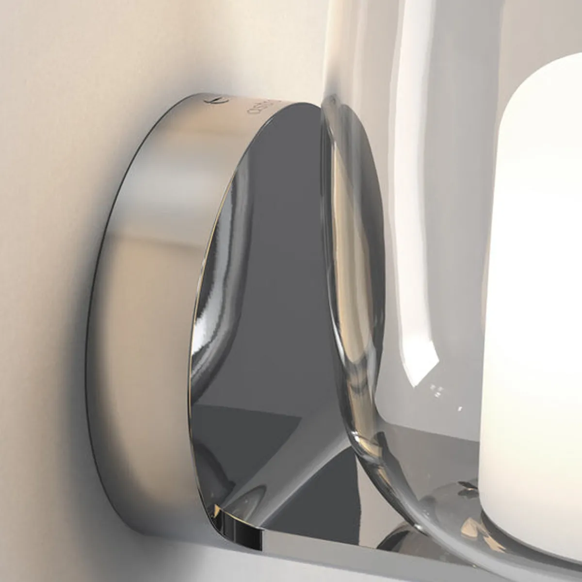Med sine organiske kurver myker Aquina-vegglampen et baderomsoppsett og kan monteres vendt oppover eller nedover. Ideell ved siden av et speil, der det fungerer både som oppgave- og omgivelsesbelysning, har den en blåst glassskjerm og sømløs metallarm, ferdig i enten polert krom eller matt svart.
