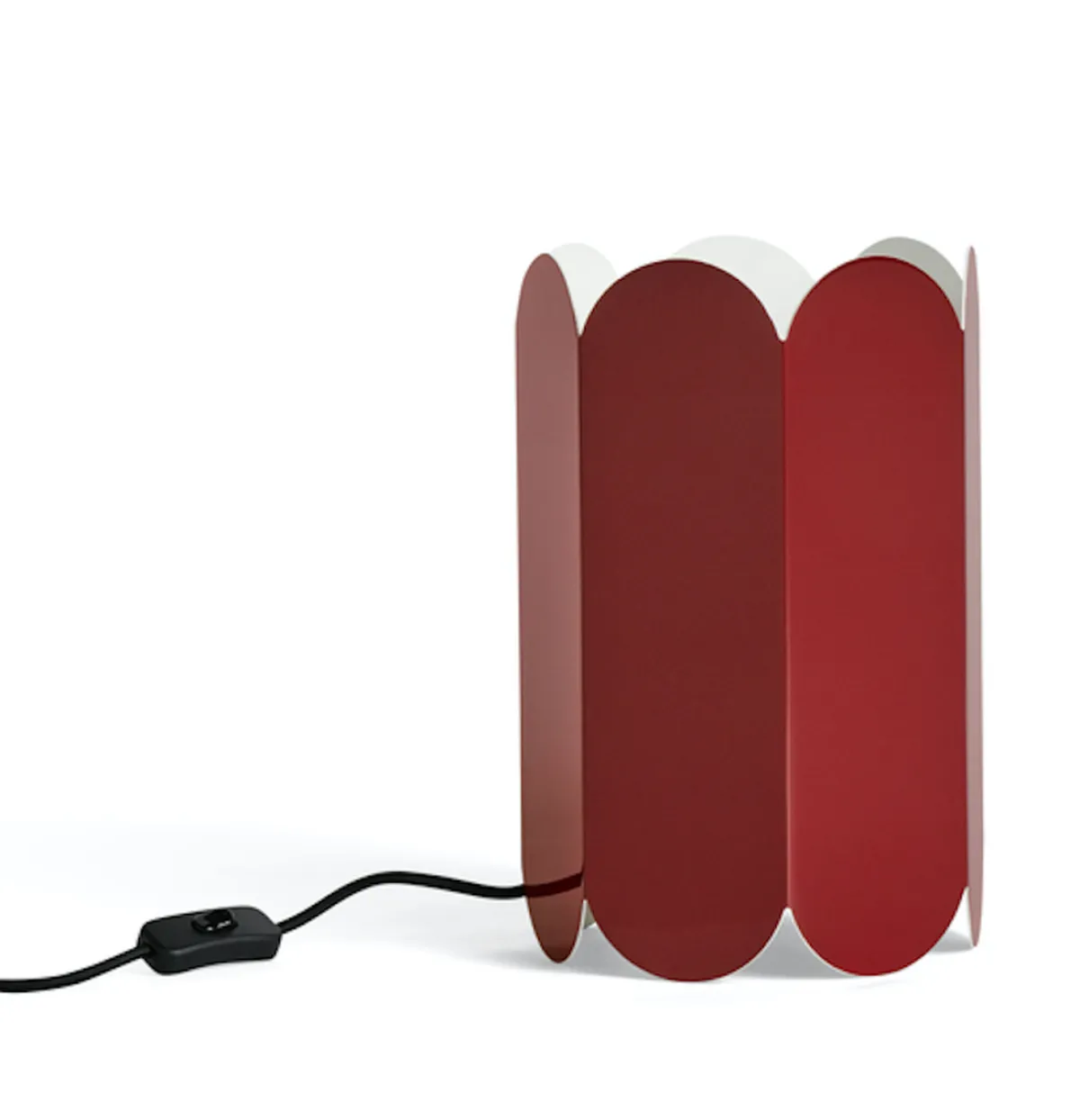 Arcs bordlamper og Arcs pendellampe er en del av en serie lamper med buet design, skapt for HAY av de belgiske duoen Muller Van Severen. Lampene er formet fra en kontinuerlig kjede med buede buer som skaper en elegant, skulptert silhuett. Det gir lampene et mykt, omgivende lys opp og ned som leker med former og skygger. Lampene er laget i solid stål og er tilgjengelig i flere forskjellige farger eller med speiloverflate. Lampene leveres uten ledning da du kan velge om du vil bruke lampene som bordlampe eller takpendel. Velg mellom oppheng til bord eller pendel fra Hay. Ledningssettet for bordlampen har av/på-bryter på ledningen.