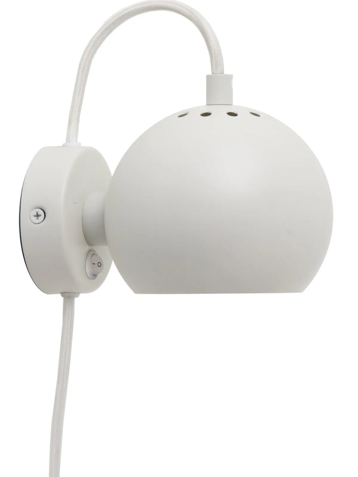 Ball er en dansk designklassiker som kunne sees i mange hjem og institusjoner på 70-tallet. Ball vegglampe er en funksjonell og stilig lampe. Den kan plasseres i en rekke innstillinger fra sengen, et lesehjørne, på badet eller hvor det er behov for godt lys. Lampehodet er festet med en magnetfunksjon og kan ordnes og flyttes rundt for å sikre at du kan rette lyset i behovsretningen.