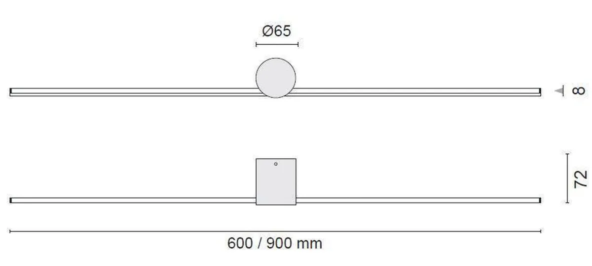 Elegant og minimalistisk lampe, som kan monteres i tak eller på vegg. Lampen gir et indirekte lys som vender nedover, og kan monteres vannrett og loddrett for å skape ulike designeffekter.