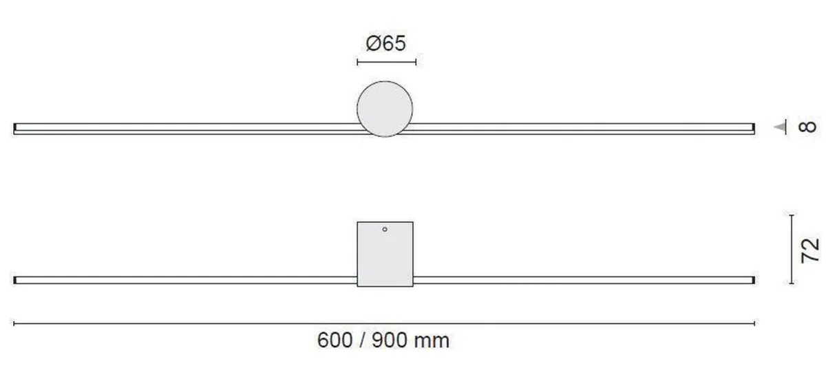 Elegant og minimalistisk lampe, som kan monteres på vegg. Lampen gir et indirekte lys nedover, og kan monteres vannrett og loddrett for å skape ulike designeffekter.