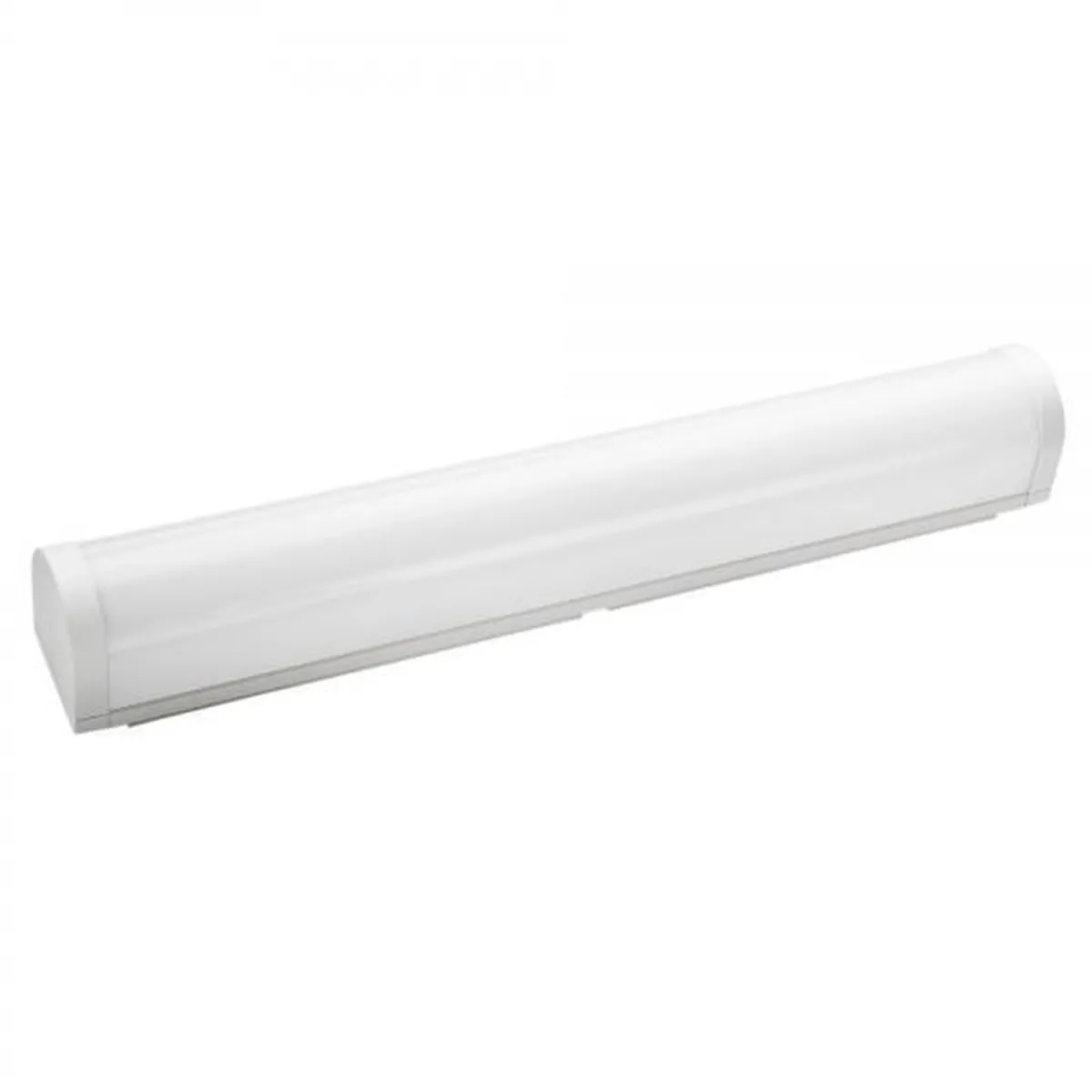 Stilren baderomsarmatur i børstet stål designet av Hallvard Jakobsen. Lampen kan monteres vertikalt eller horisontalt.