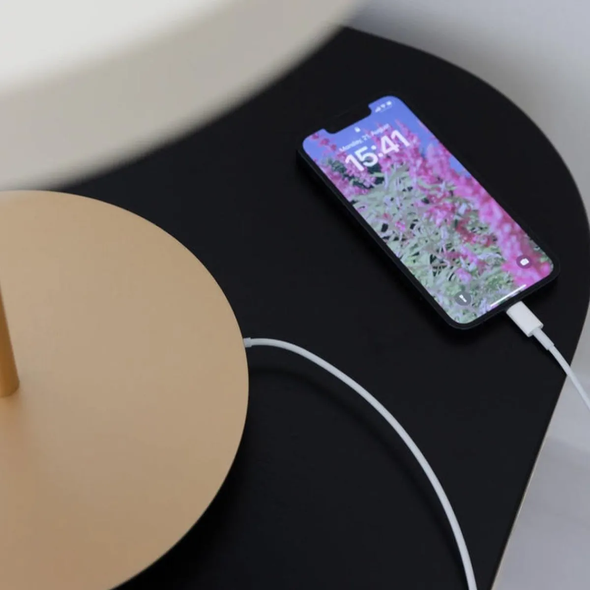Asteria-bordlampe er en lekker moderne bordlampe med integrert LED som kan dimmes. Lampen har også inngang til USB-kabel, slik at du kan lade telefonen.