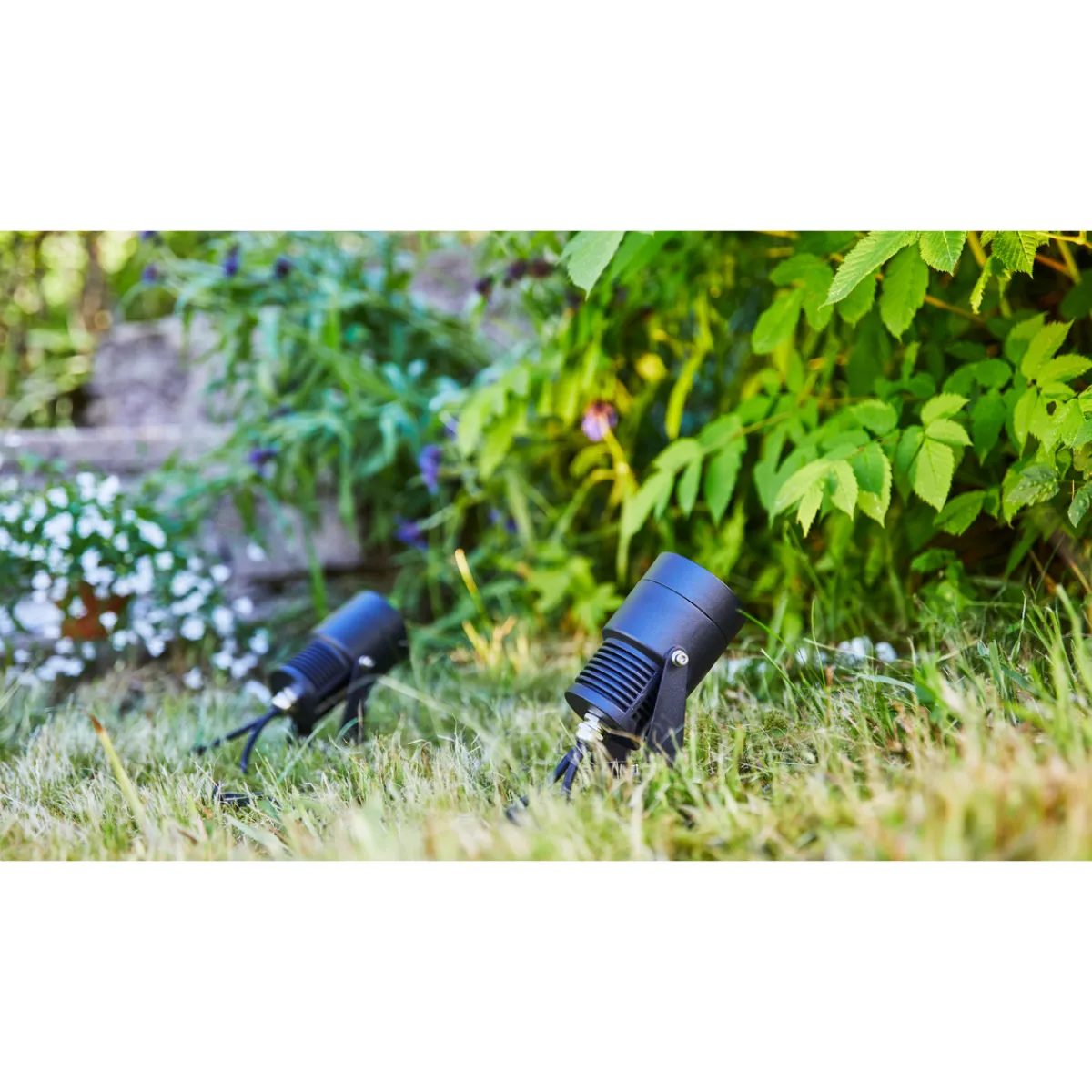 Garden spot 15w fra Markslöjd. IP44 godkjent for utendørs bruk. 6W LED. Leveres med spyd for bakkeplassering og Trafo kjøpes separat.