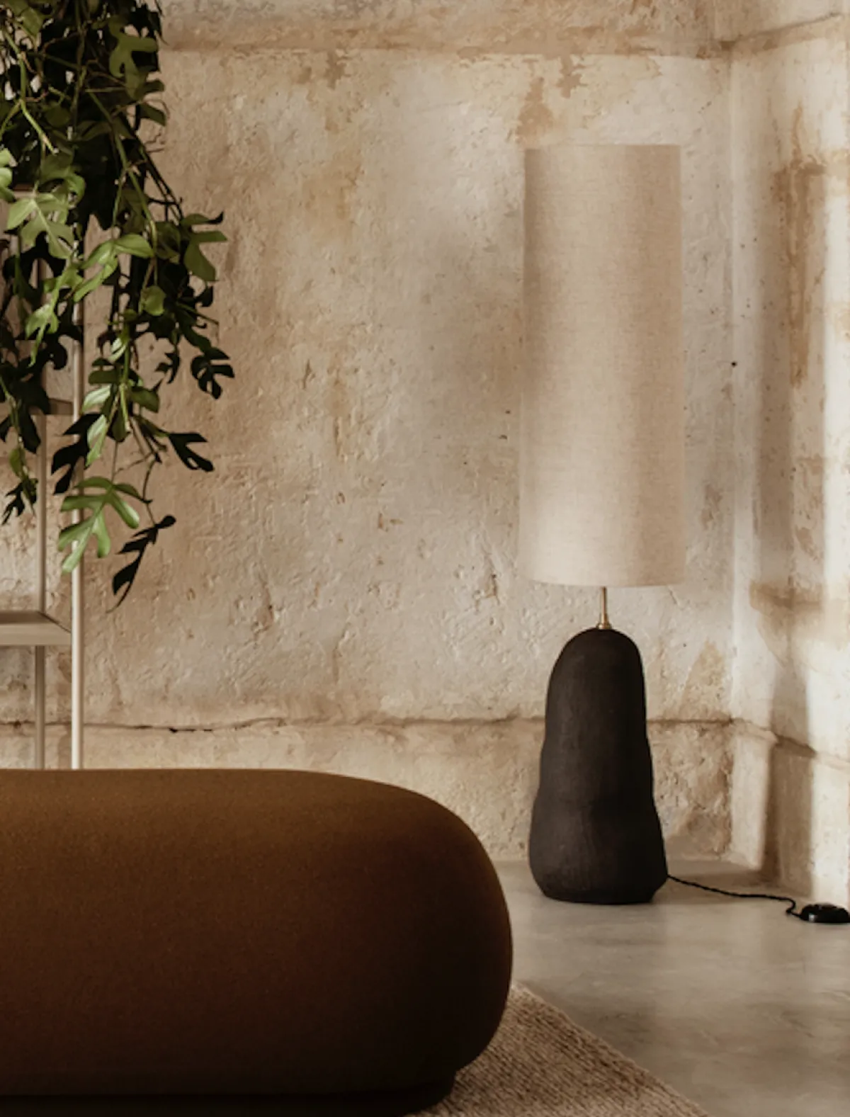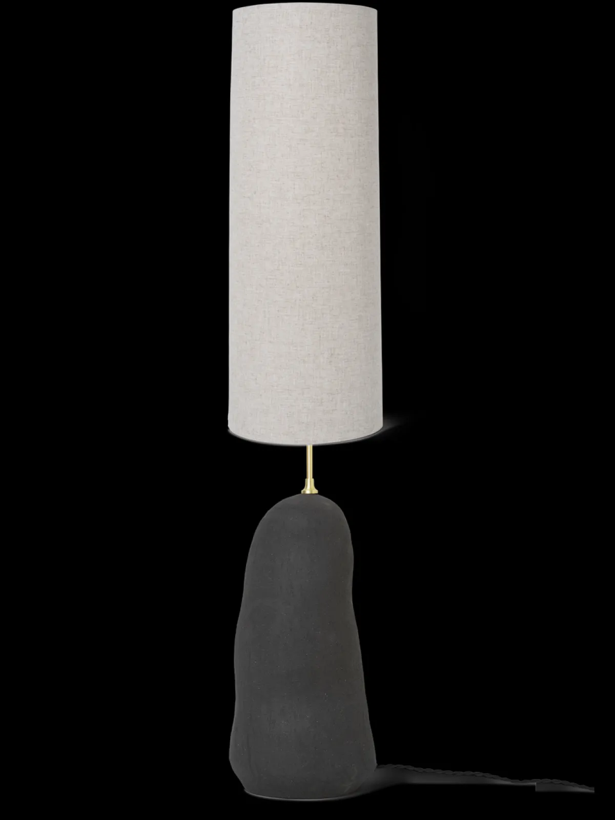 Hebe Gulvlampe i Mørk grå/Natur er en dekorativ gulvlampe fra det danske merket Ferm Living. Lampefoten er formet for hånd i keramikk, som er kombinert med den klassiske lampeskjermen i tekstil. Lampens organiske form gir hjemmet et kunstnerisk preg. Lampeskjermen har lokk så du ikke blir blendet av lyspæren.