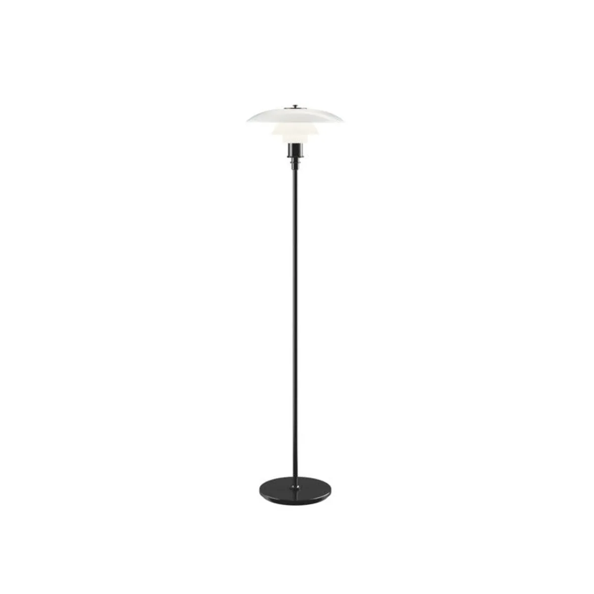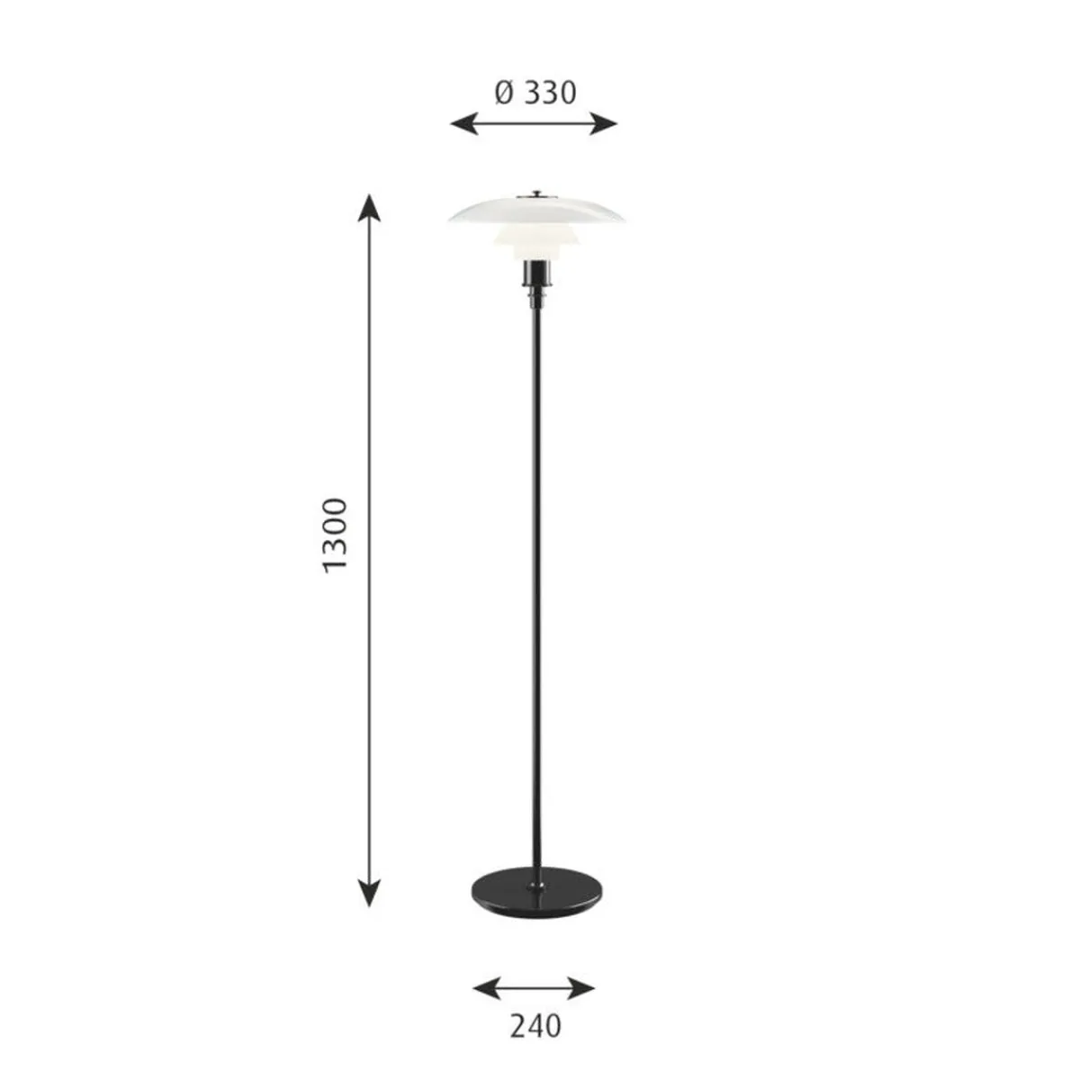 - Materiale: hvitt opalt glass. Base og stamme: svart metallisert