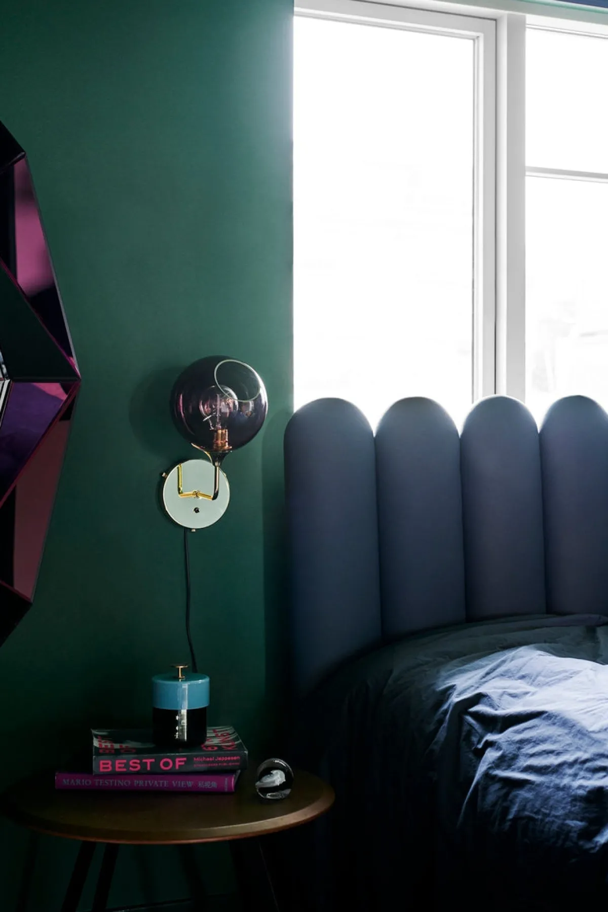 Ballroom Vegglampe er ideell som vegglampe ved sengen, i gangen eller hvor som helst en vakker vegglampe er nødvendig. Vegglampen er i samme serie som ballroom taklamper og ballroom Molecular. Vegglampen er hådblåst og håndmalt, derfor er lampen helt unik og kan variere litt i farge og størrelse.