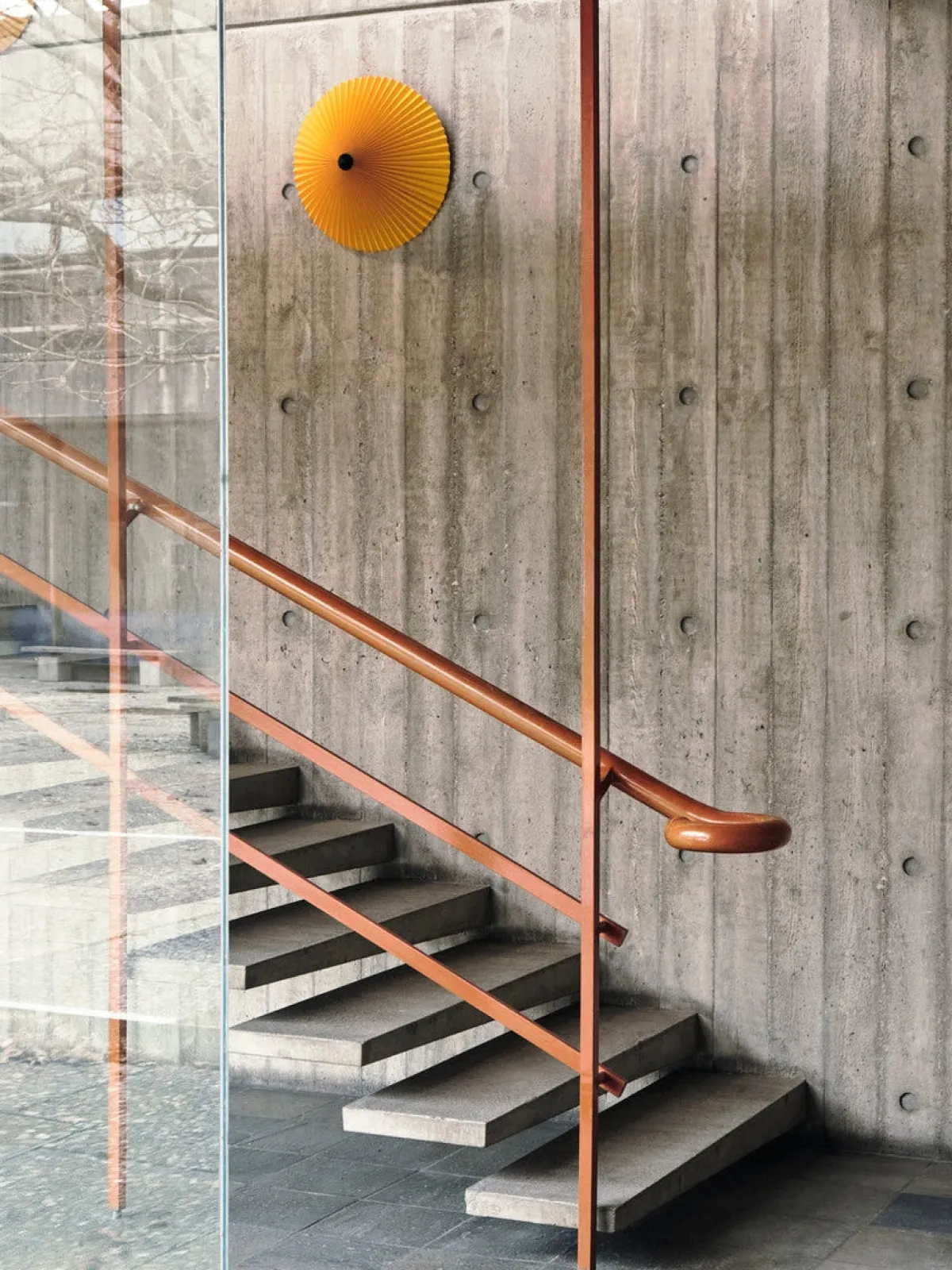 Matin Vegglampe har en moderne men poetisk design, med en konstruksjon som kombinerer visuell delikatesse med fysisk robusthet. Skjermen kan vinkles omtrent 45 grader både oppover og nedover for å skape et omgivende opplyst samt retningsbestemt lys. Den veggmonterte designen består av en stålbøyd ramme i polert messing med matt sort beslag kombinert med en plissert stoffskjerm. Skjermen er tilgjengelig i to størrelser og flere fine farger. Lyskilden er integrert LED, dimmebryter på ledningen.