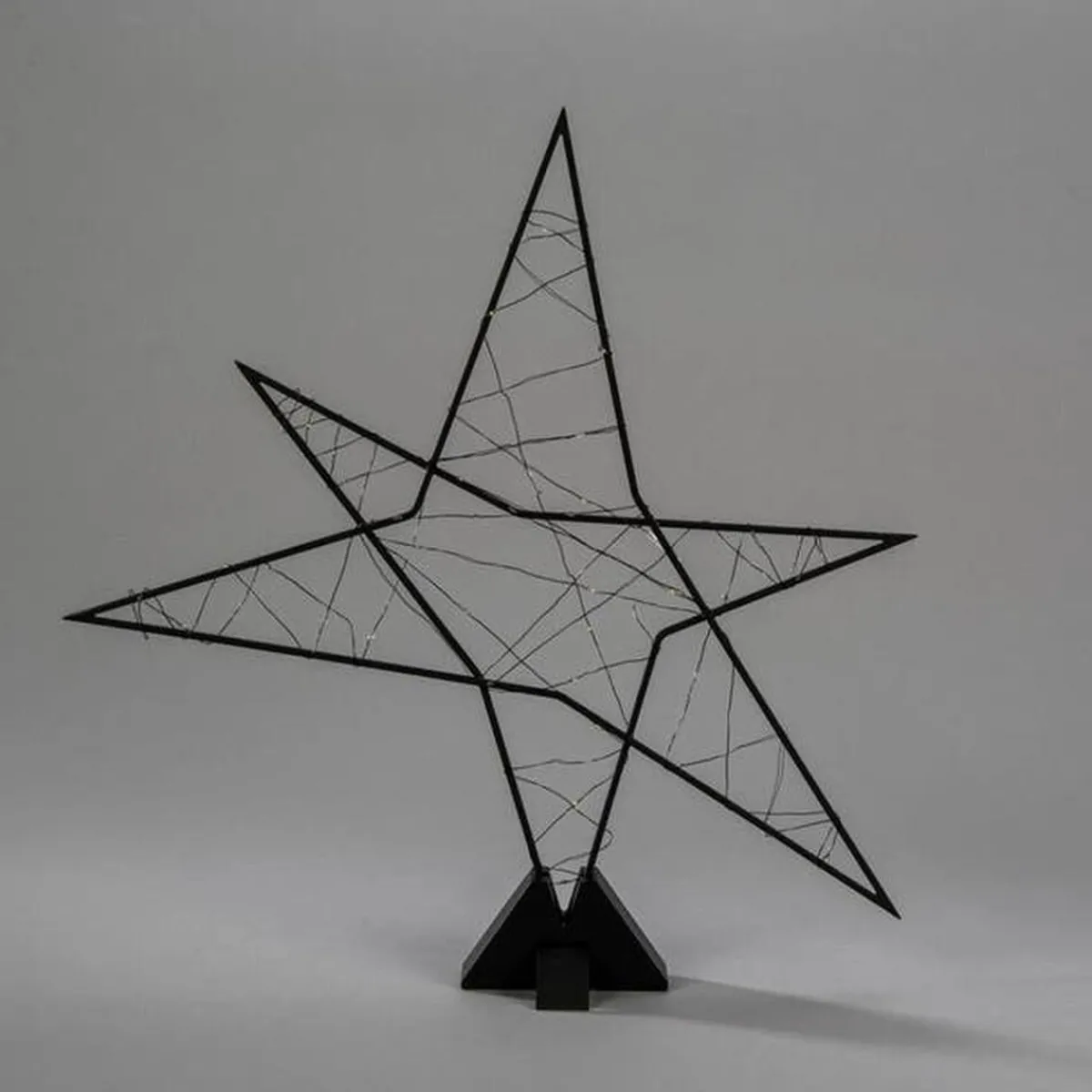 Unik borddekorasjon i form av en stjerne som kan plasseres i forskjellige posisjoner på en svart base. Laget av svart metall og utsmykket med glitrende LED-lys som sprer en varm, magisk julestemning. Drevet via USB-kabel.