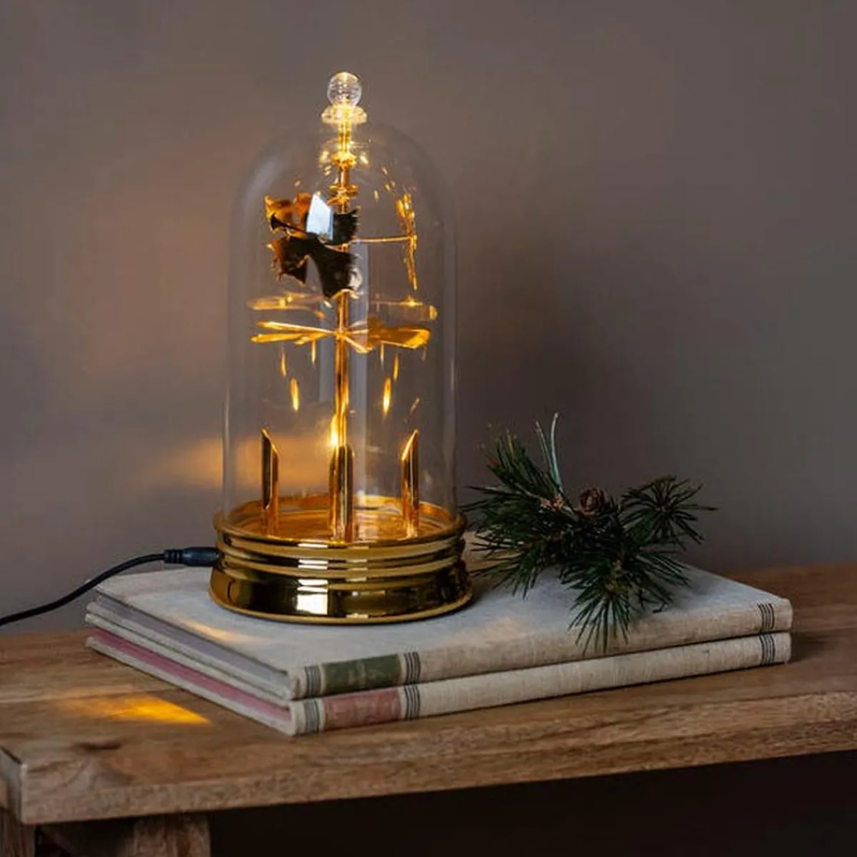 Skap en herlig atmosfære med et klassisk spinnende englespill i en moderne vri – nå med varmt hvitt LED-lys. En vakker borddekorasjon som passer perfekt i vinduer, på hyller eller som gave. Det tidløse designet og de glitrende englene vekker både nostalgi og glede. Perfekt som julepynt, gave eller stemningsforsterker i hjemmet ditt.
