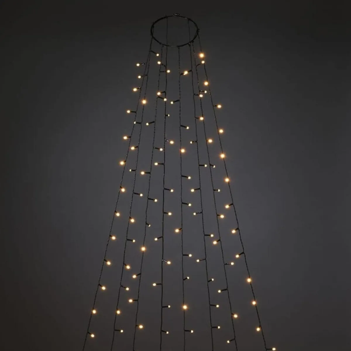 Ringslynge 2,4 meter, 8 slynger med 30 amber LED med frostet tupp i hver slynge. Halvparten av disse har glitrende effekt. Svart kabel.