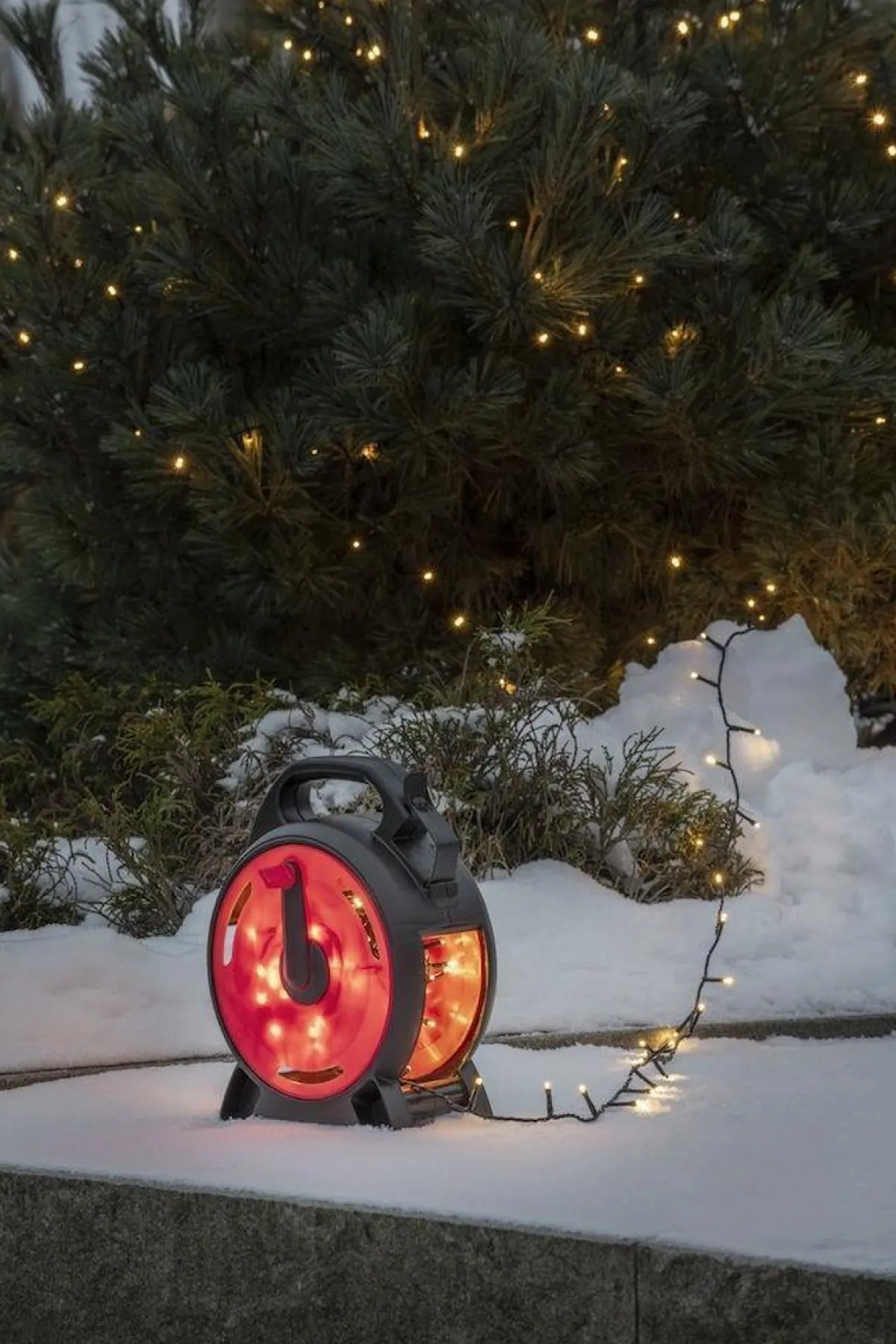 Juletrelys & Lysslynger>Konstsmide Slynge 600 LED 42 meter julelys på kabeltrommel IP44 – Varmhvit