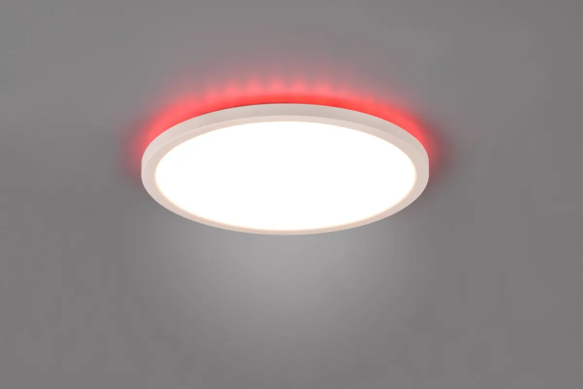 Aureo er en slank taklampe som leveres med fjernkontroll. Med fjernkontrollen kan lampen dimmes, slås av/på, endre fargetemperatur og farget lys, samt lampen kan settes i nattmodus.