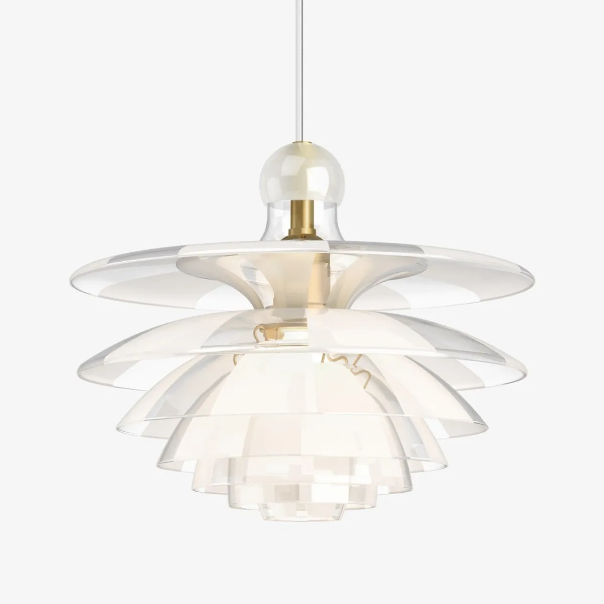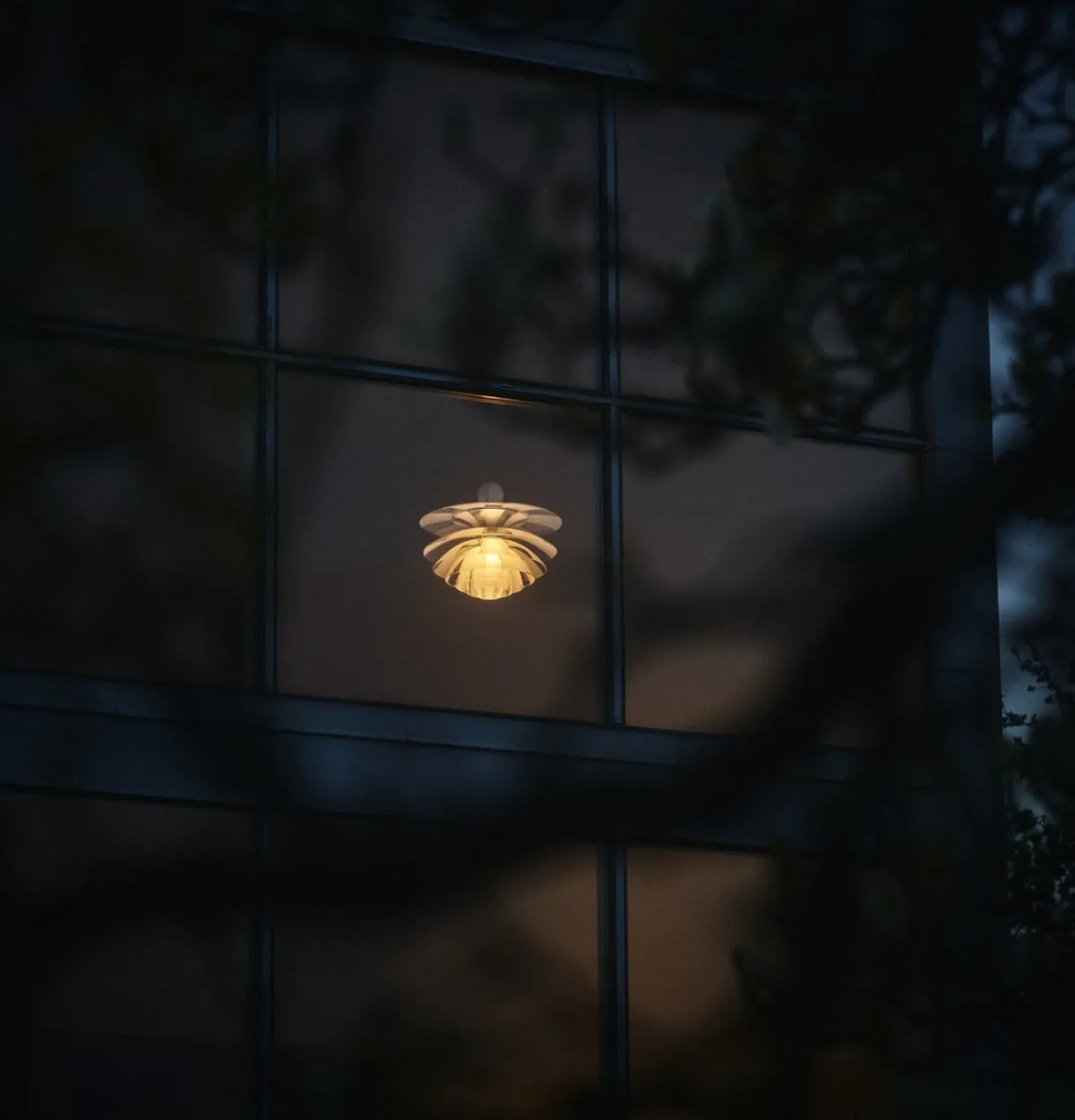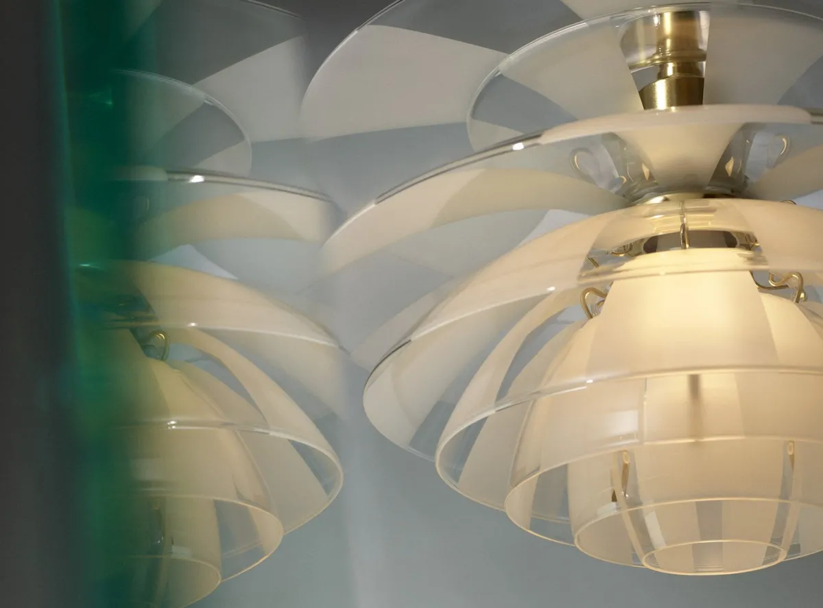 Glasskronen med syv skjermer avgir et blendefritt, nedadrettet lys, mens den utstråler en hyggelig, delikat glød. Fra skjerm til skjerm dekker matterte avskjermingsfelt vekselvis de klare, og sprer dermed lyset på en enda mykere måte. PH Septima er en juvel i hjemmet.