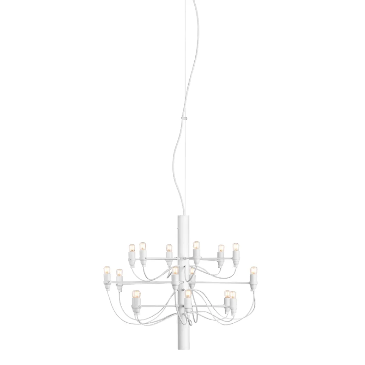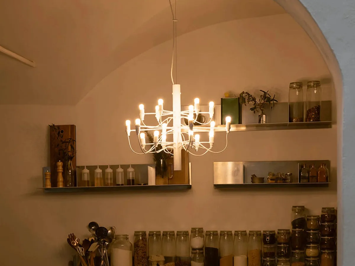 Lysekronen 2097 fra FLOS er en tidløs og klassisk lampe som hever ethvert rom. Den er tilgjengelig i sølv, messing, hvit og matt sort og i fire størrelser. Lysekronen 2097 ble designet av Gino Sarfatti i 1958 og har blitt ett lampeikon. Dette er en tidløs designklassiker og lysekronen gir mye lys til rommet. Flott å bruke over spisebord, over salongbordet, på soverom og i trappeoppgang.