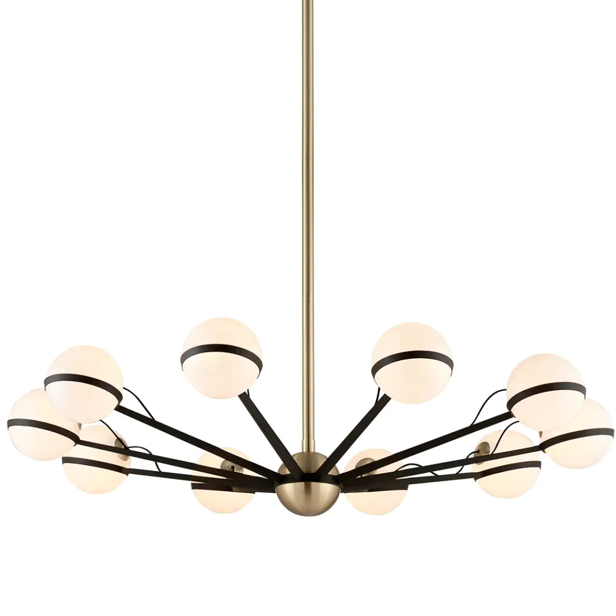Ace er en moderne og sofistikert lysekrone som løfter ethvert rom. Heng den over et bord eller midt i rommet om høyden tillater det. Lampens høyde kan reguleres fra min 47cm – max 138cm fra taket. Lampen har 10 kupler i opalhvitt glass og sørger for godt lys til rommet.