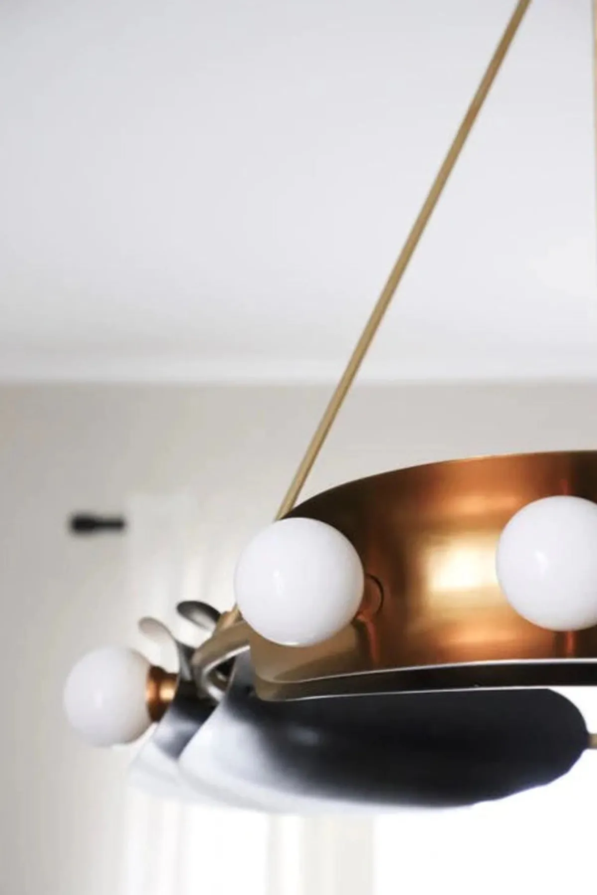 Hopper er en elegant, sofistikert lysekrone med industrielt preg som løfter ethvert rom. Heng den over et bord eller midt i rommet om høyden tillater det. Lampens høyde kan reguleres fra min 69cm – max 250cm fra taket. Lampen har 12 kupler i opalhvitt glass og sørger for godt lys til rommet.