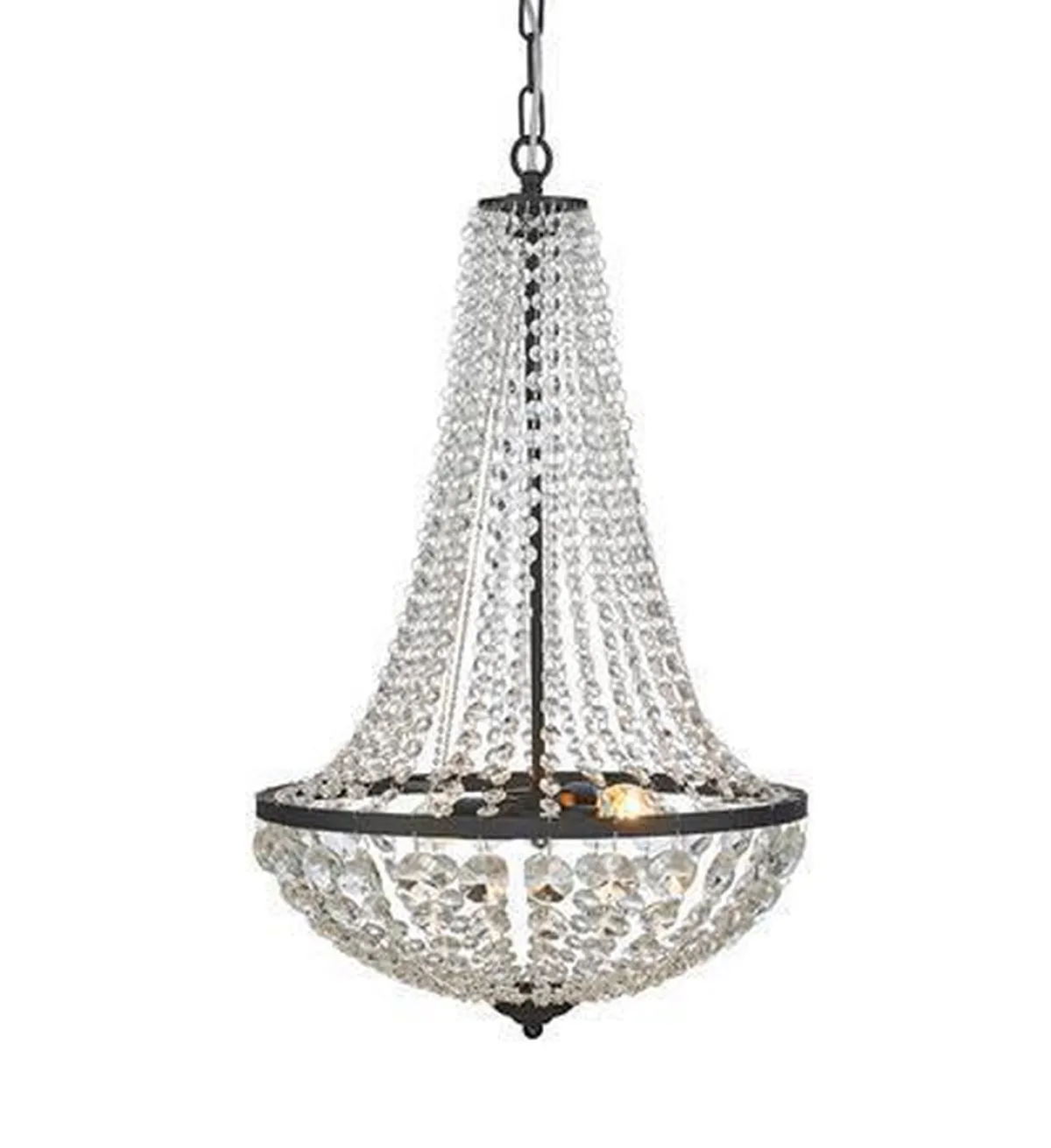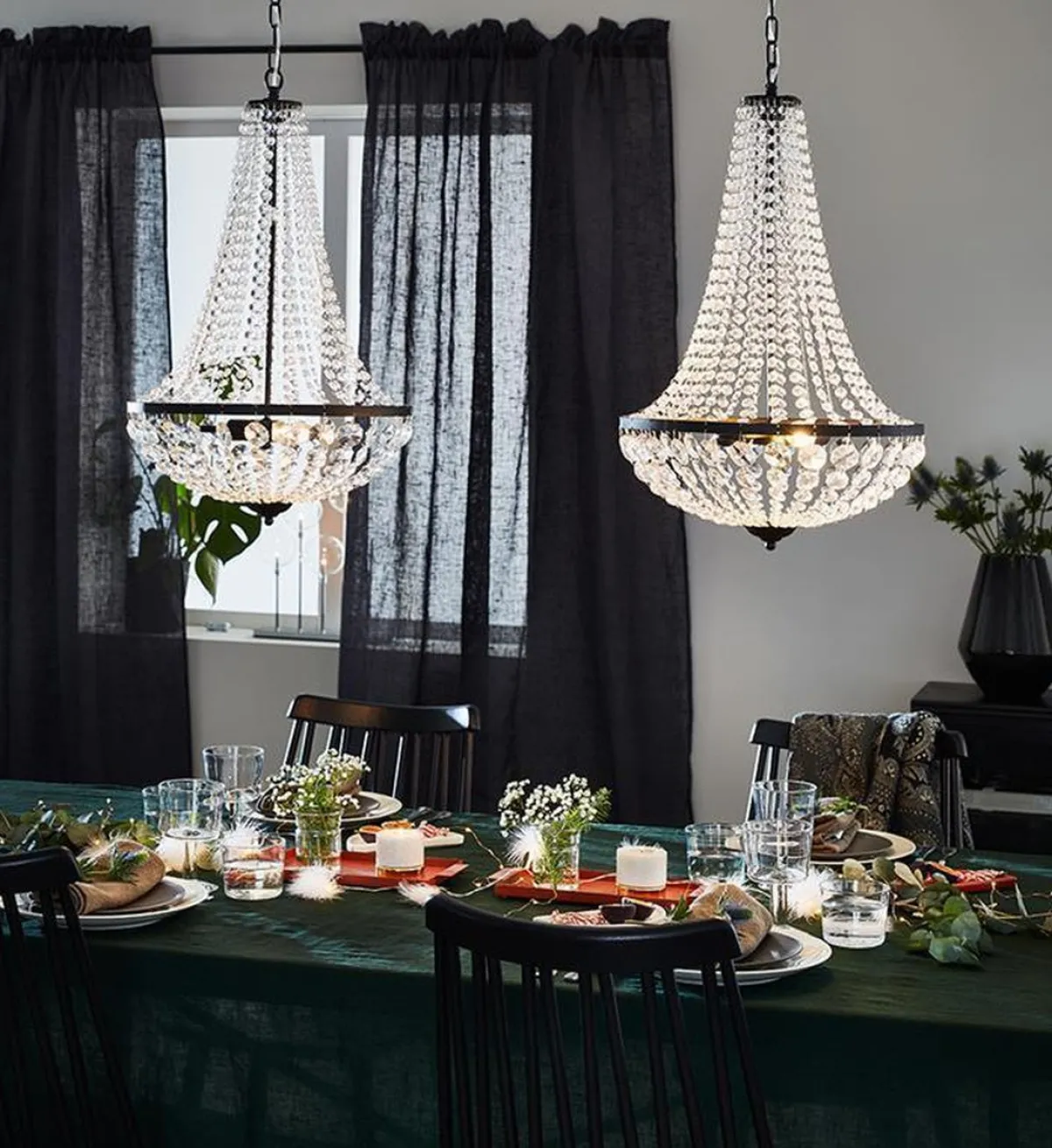 Gränsö lysekrone fra Markslöjd. Mattsort metall og klare prismer.