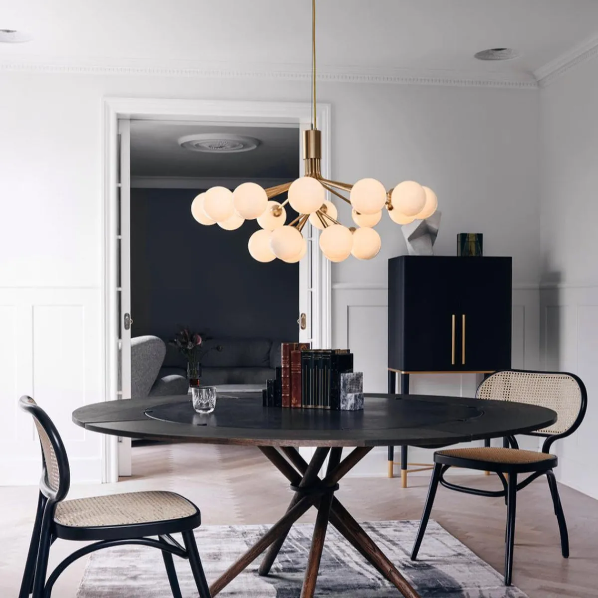 Apiales 18, med sine 90 cm i diameter, passer som midtpunktet i foajeen, i en stor stue eller over et stort spisebord.