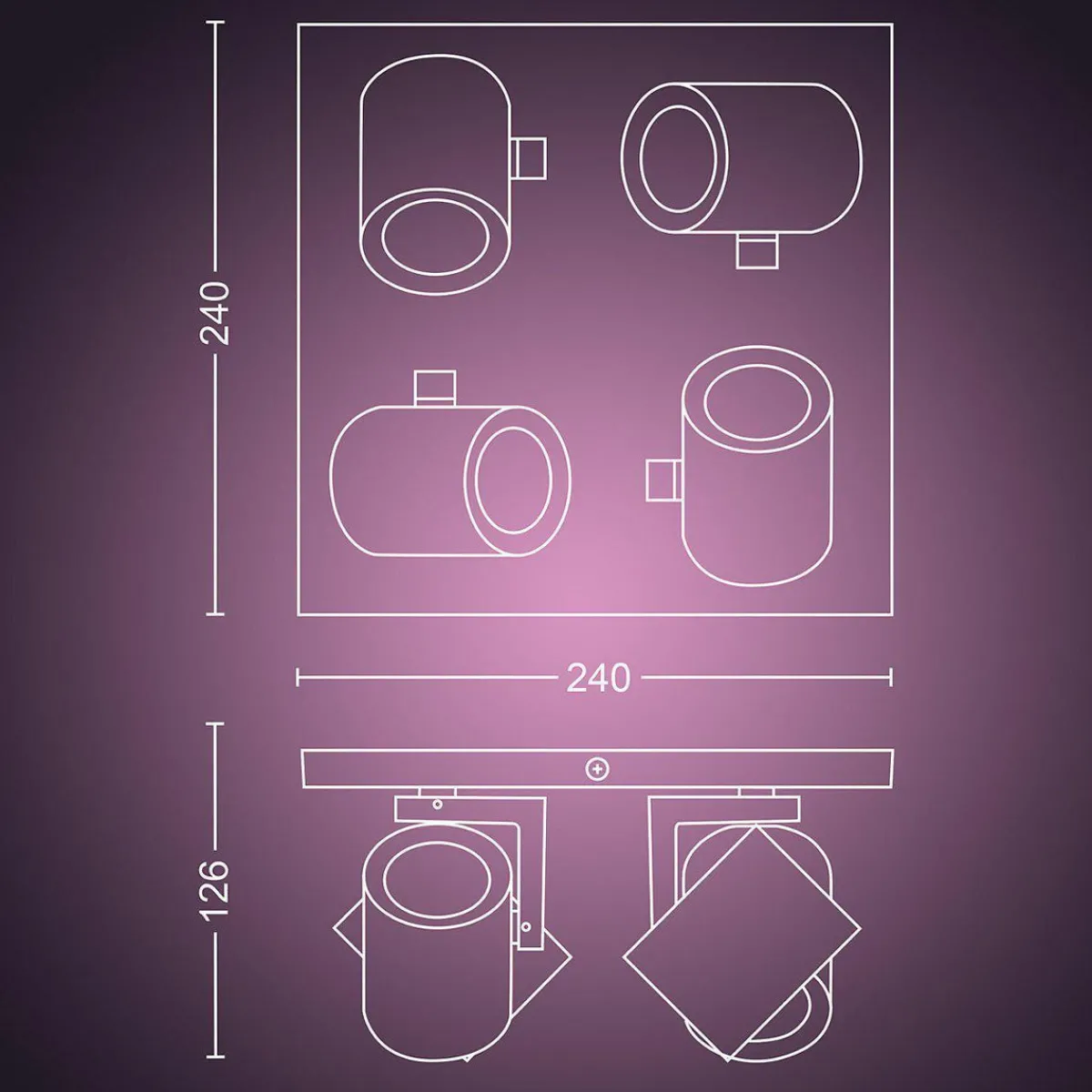 Lysmengde: 350 Lumen pr lyskilde. Totalt effekt: 1400 lumen