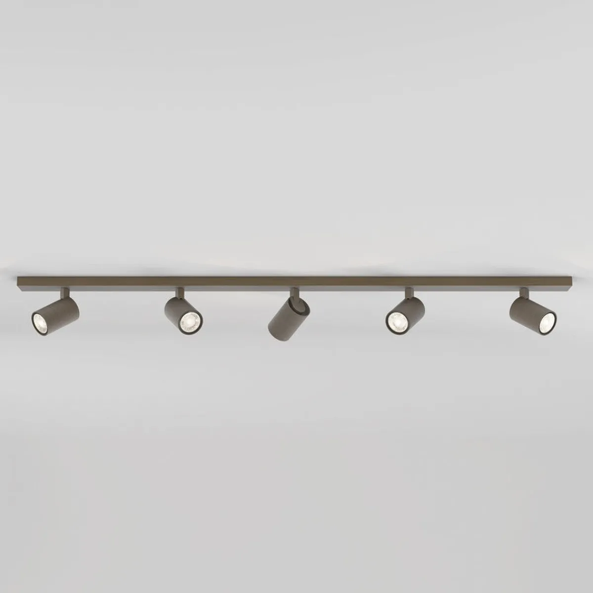 Eksklusiv spotskinne i bronse, fra Astro. Spotskinnen kan dimmes ved bruk av dimbare lyspærer og ekstern dimmer. Du behøver 5 stk lyspærer med GU10-sokkel.