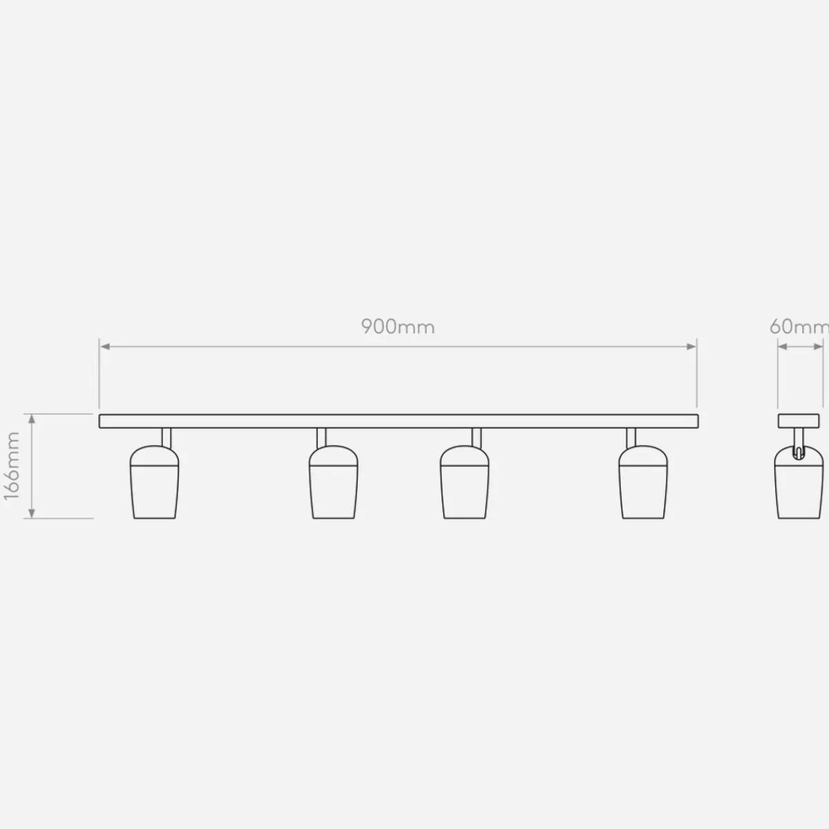 Med sine fire buede spotlight-hoder arrangert langs en rett stang, er Koto det perfekte valget for å legge til funksjonell, flerveis spotlight til hjemmet ditt. Takket være den allsidige designen kan Kotos fire spotlights justeres individuelt for å fokusere lyseffekten etter ønske, noe som gjør den til en ideell belysningsløsning for kjøkken, arbeidsområder, stuer og andre steder.