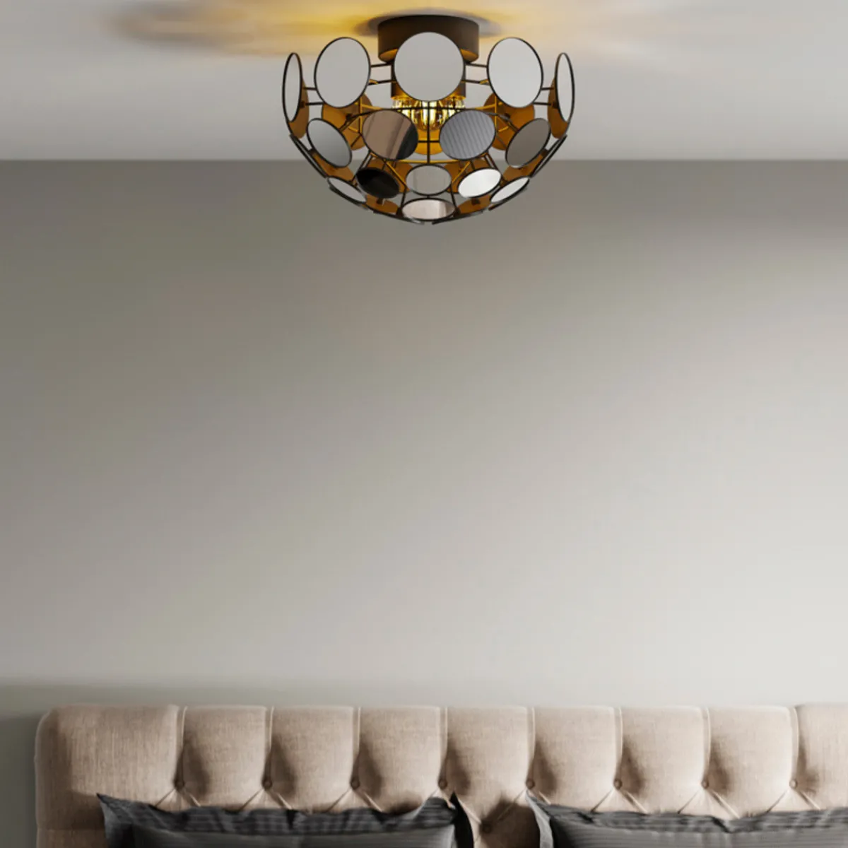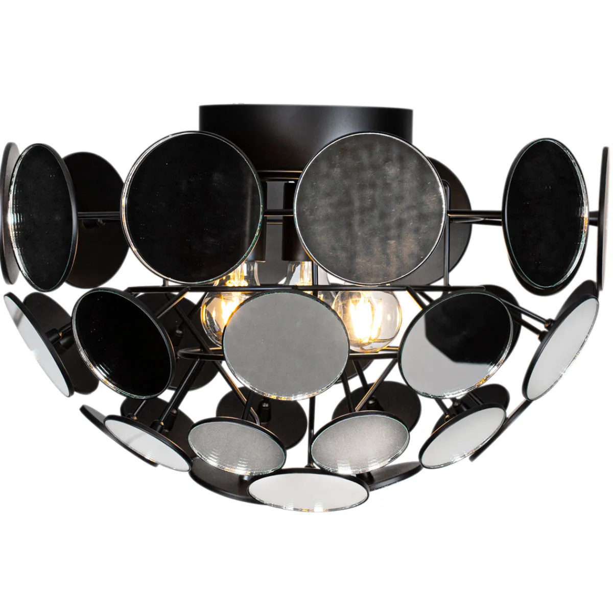 Når moderne mote snuser på retrotrenden, ender vi opp sånn omtrent her, med Vanita plafond. En plafond i et iøynefallende design som fører tankene hen til discokulens glansdager, men med et svært moderne design. Som ikke minst avsløres av de moderne detaljene i svart, matt stål. Lyspærene er omgitt av en svart, tynn stålramme, som igjen er kledd med flere runde, flate speil. Vanita plafond er rett og slett umulig å gå glipp av og vil gi deg glede i mange år fremover.