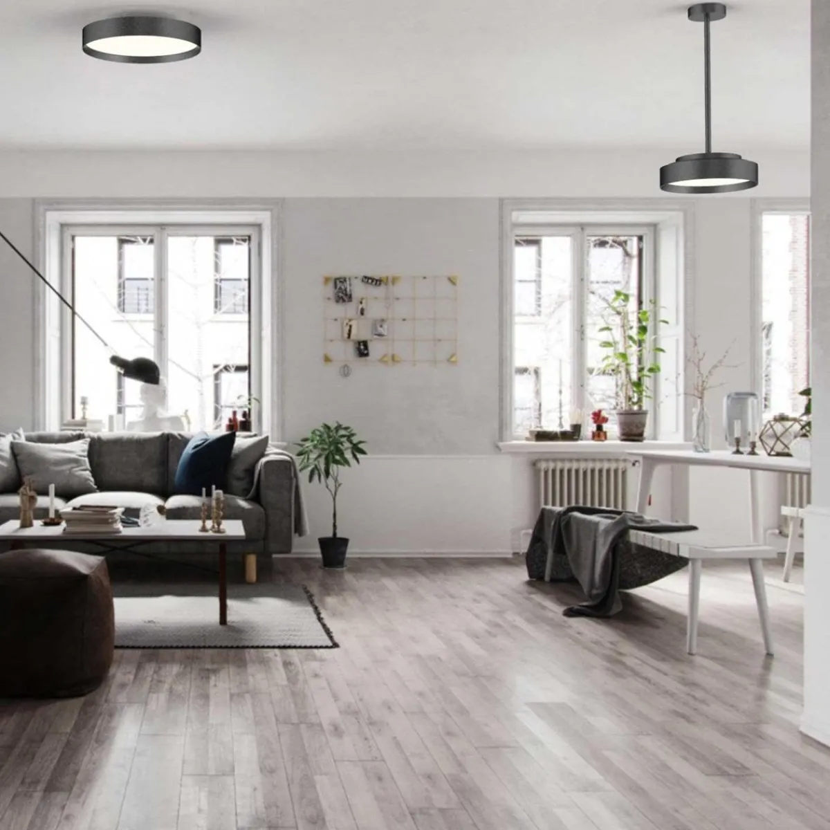 Taklampen Lucia 45 cm i sort, har et moderne og tidløst design, og gir fantastisk god rombelysning. Lampen med integrert LED-lys er laget av metall, og den har et smart mikroprismatisk cover, som sikrer optimal lysspredning uten skygger og blending. Lampen kan bli en pendellampe ved å kjøpe en smart oppheng som er tilgjengelig i to versjoner.
