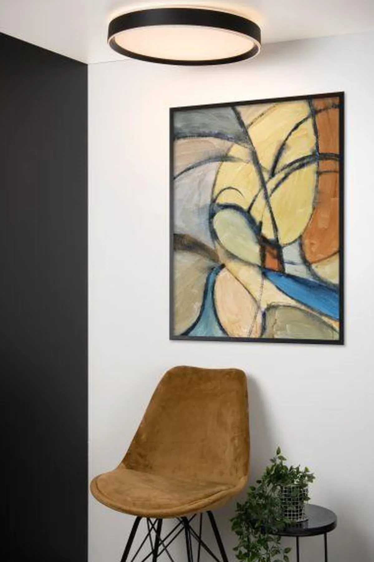 Nuria er en stilfull taklampe i sort, med integrert lys. Lampen er utstyrt med 3-stegs dimming, som gjør at du kan dimme lampen med en vanlig av/på-lysbryter i 3 nivåer.