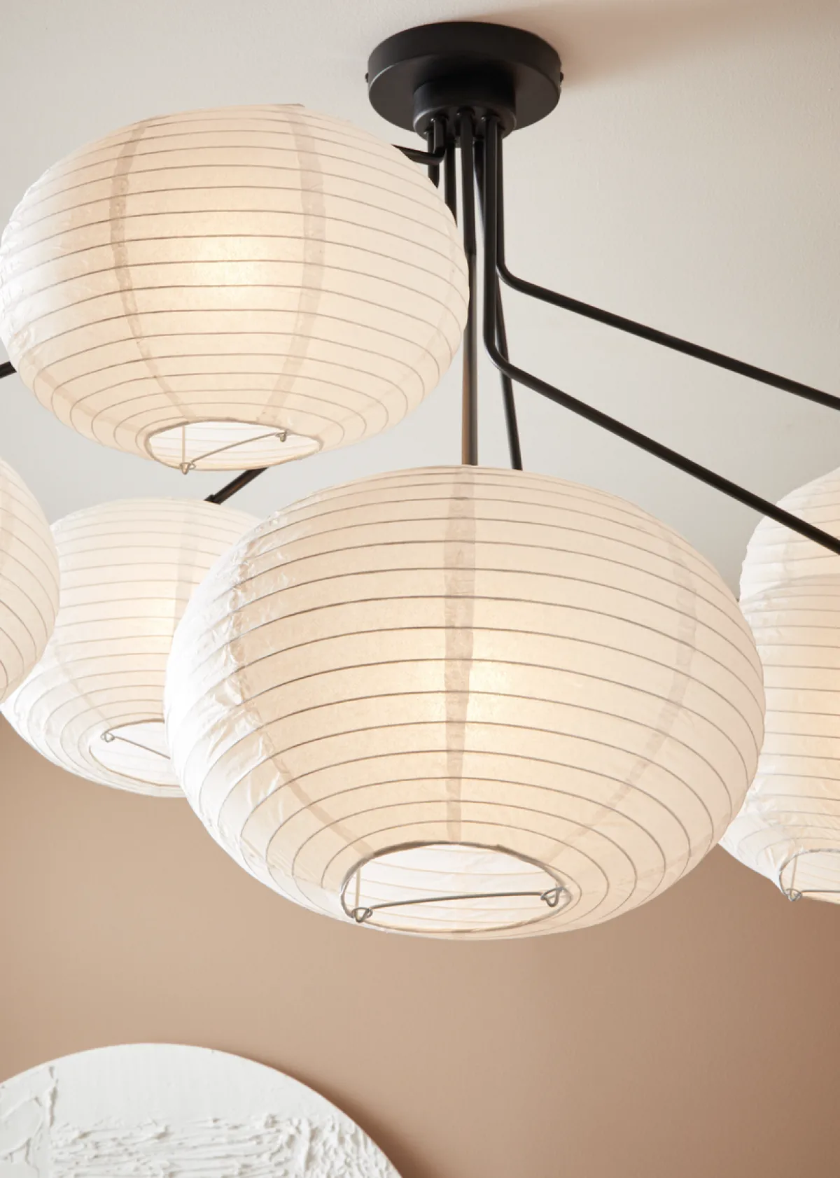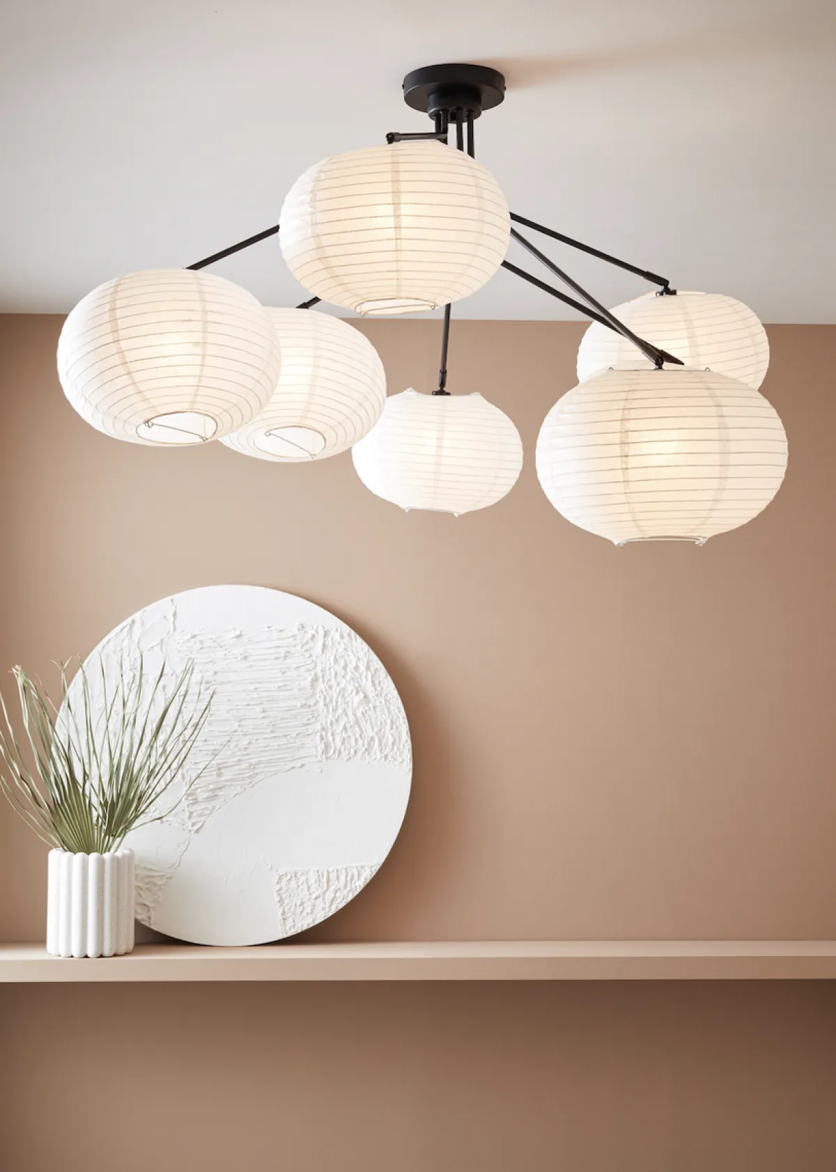 Galaxy-taklampen er laget av fint papir med riller, som gir et stilig uttrykk. Lampen passer godt i stuen, på kjøkkenet, soverommet eller i gangen.