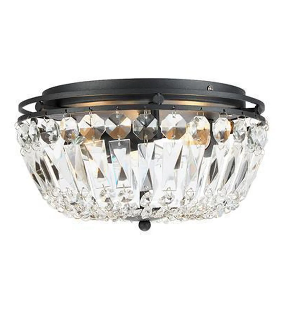 Vasa er en dekorativ taklampe med glass prismer. Leveres i sort metall.