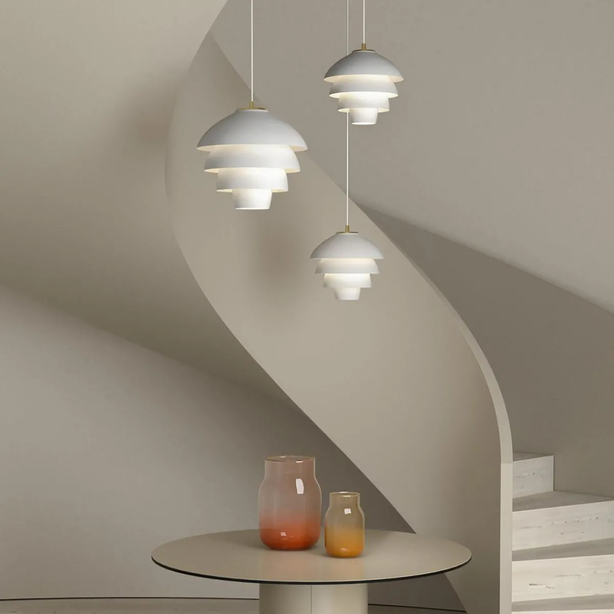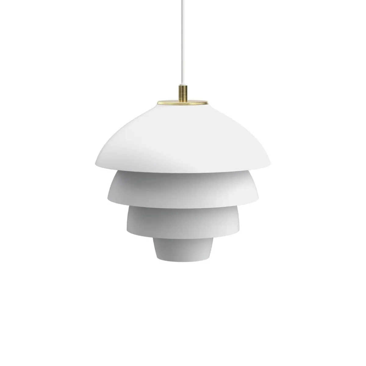 Håndlagde Valencia går inn i en ny æra med sin kombinasjon av matt hvit og massiv messing. Den nøye utvalgte matte hvite fargen sammen med håndpolerte varme messingdetaljer skaper et moderne, men tidløst uttrykk – perfekt tilpasset dagens interiør. Valencia finnes som pendel-, bord- og gulvlampe.