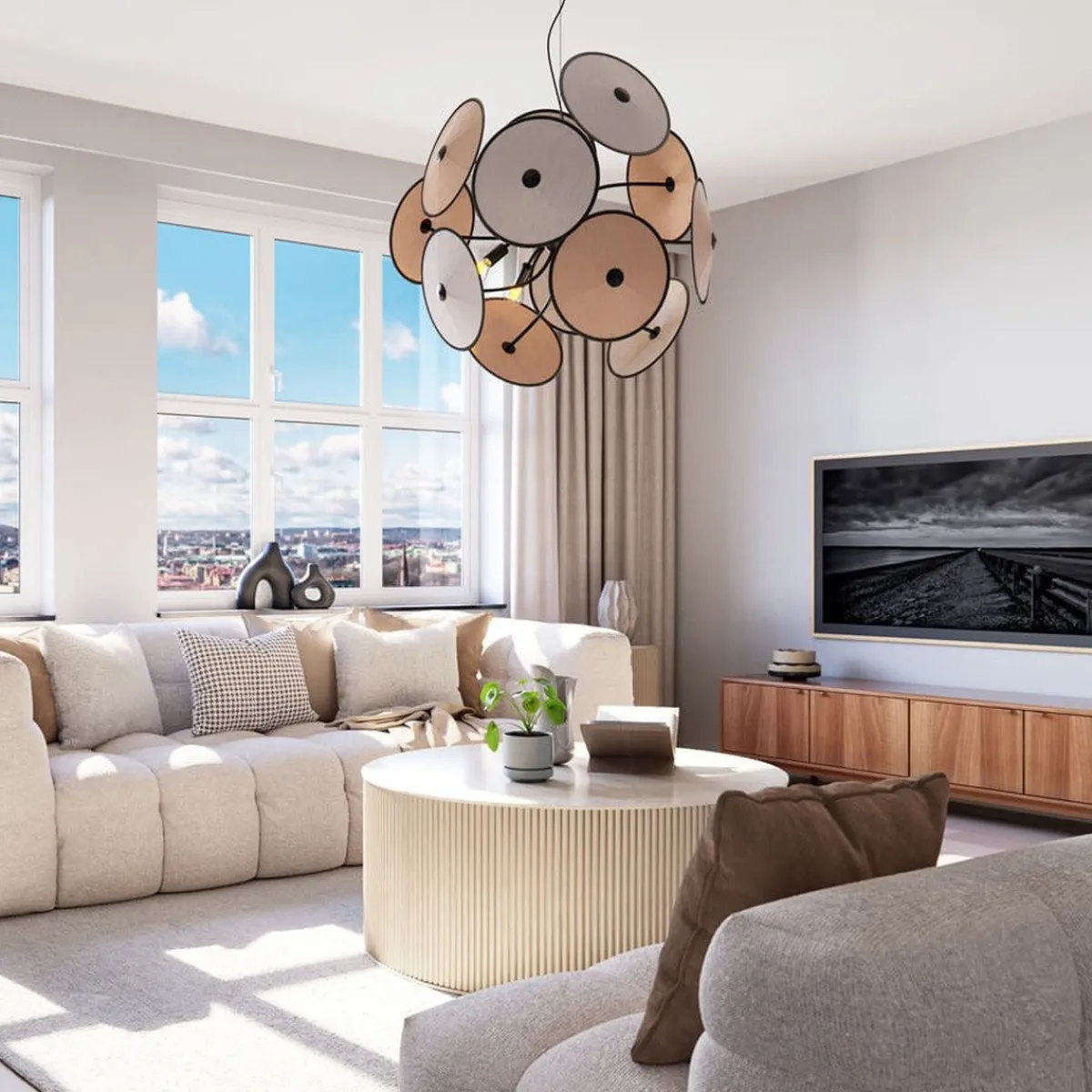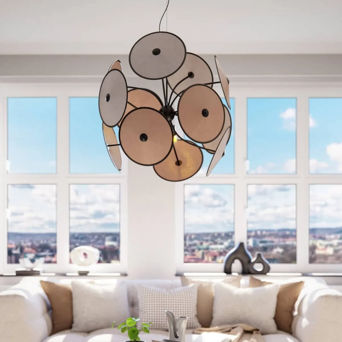 Opplev eleganse og allsidighet med vår Cappello taklampe. Med 6 off-white og 6 beige nyanser i thailandsk silke, skaper den harmonisk belysning.