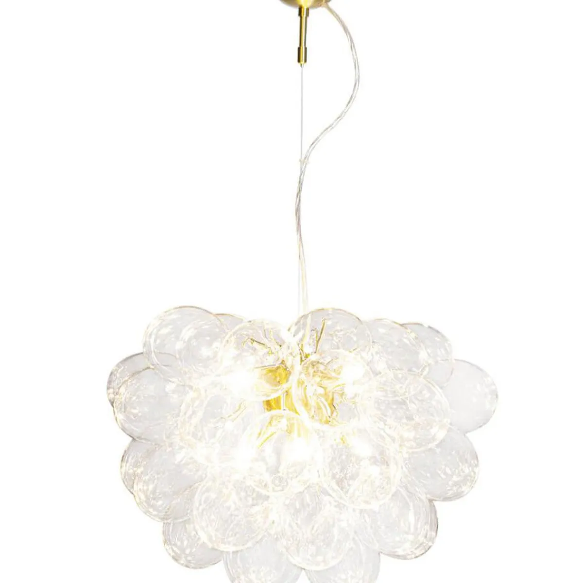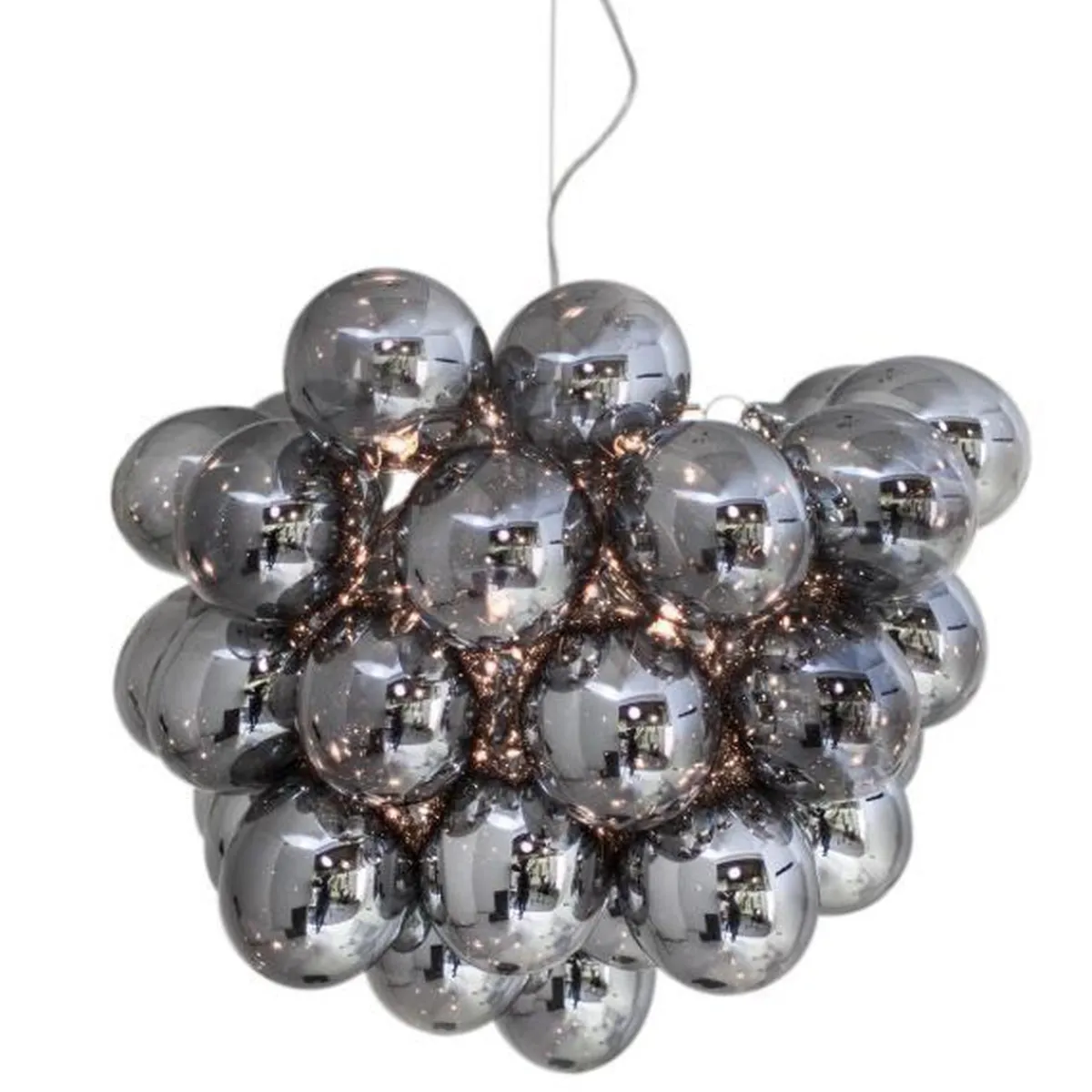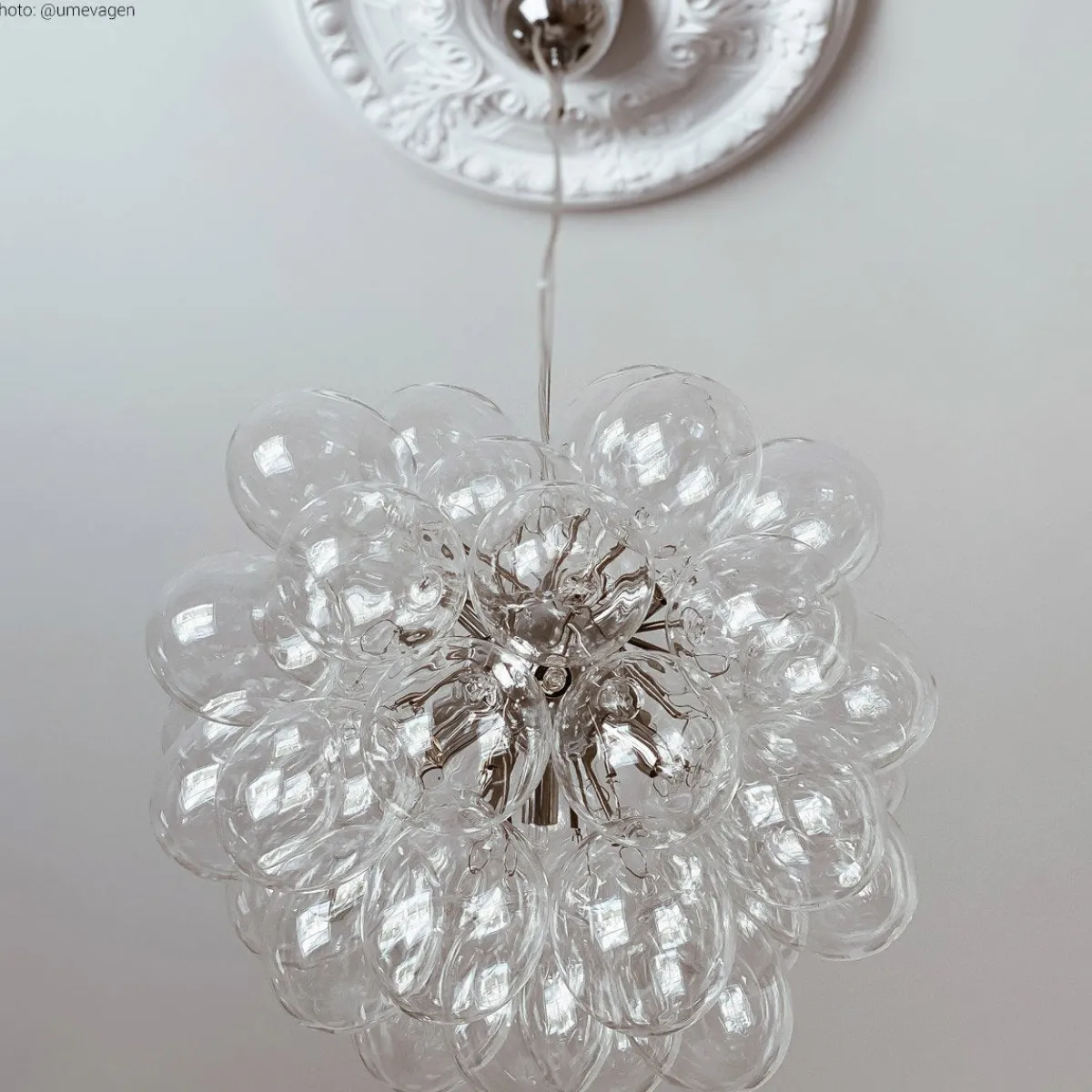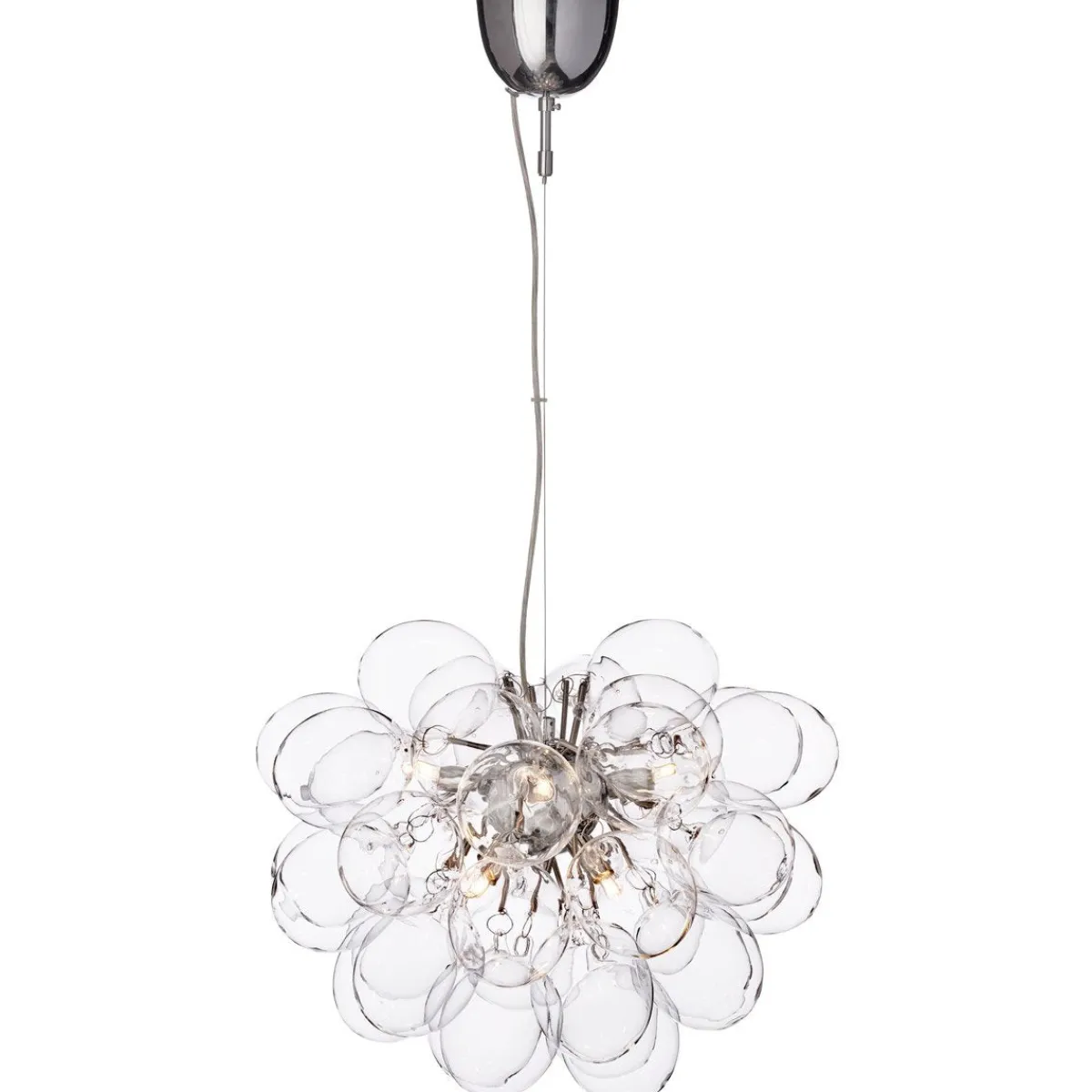 Unn deg høyden av luksus og stil med Gross taklampe Ø50cm, en svevende sky av 37 lette, munnblåste glassklokker som ligner atomer og avgir et herlig skinn. Gross er By Rydéns egen serie og et blikkfang i nettbutikken vår. Lampen finnes flere farger; Matt hvitt, Ravgult, Røykgrått, Flerfarget och Nacreous.