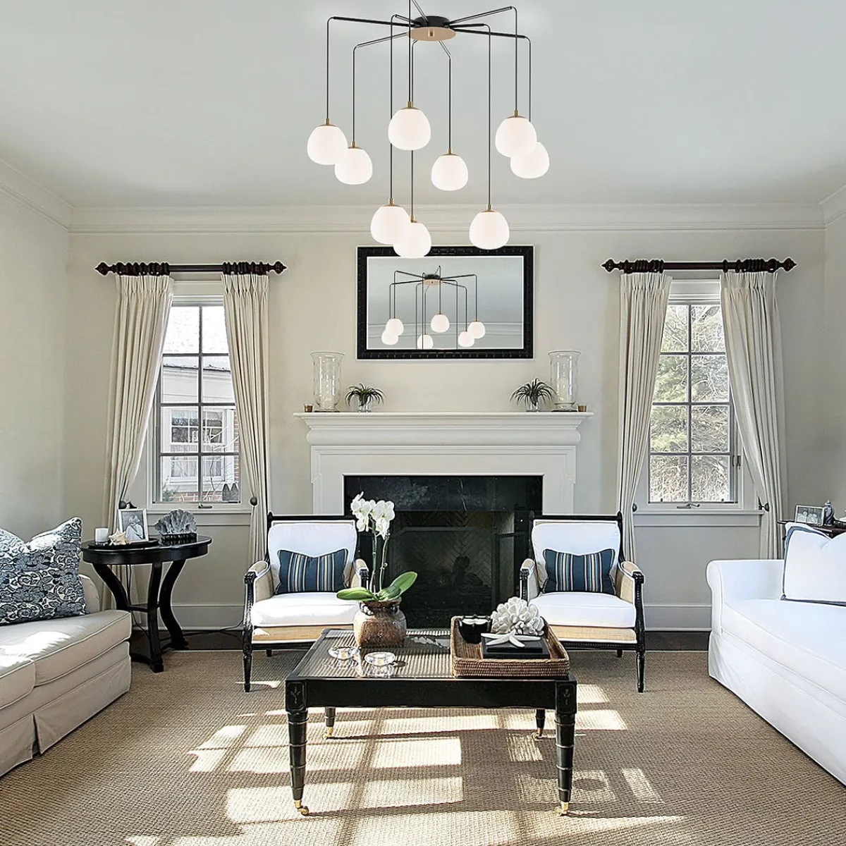 Raindrop taklampen tilfører en unik eleganse og et vakkert lysspill til ethvert rom. De ni runde glasskulene reflekterer lyset jevnt og skaper myke skygger og en behagelig atmosfære.