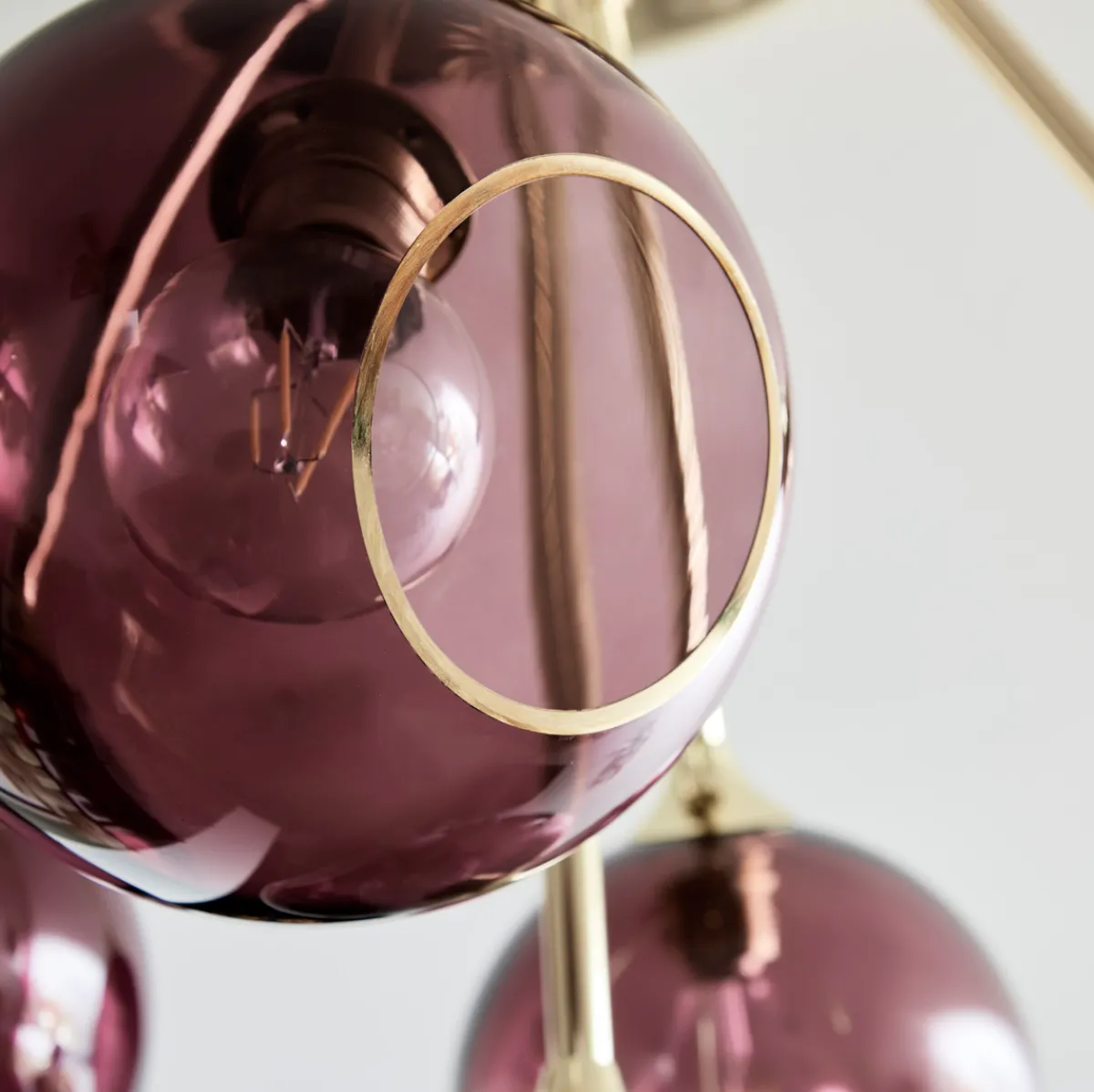 - Materiale: Håndblåst og håndmalte glasskupler, base i messingfarget jern