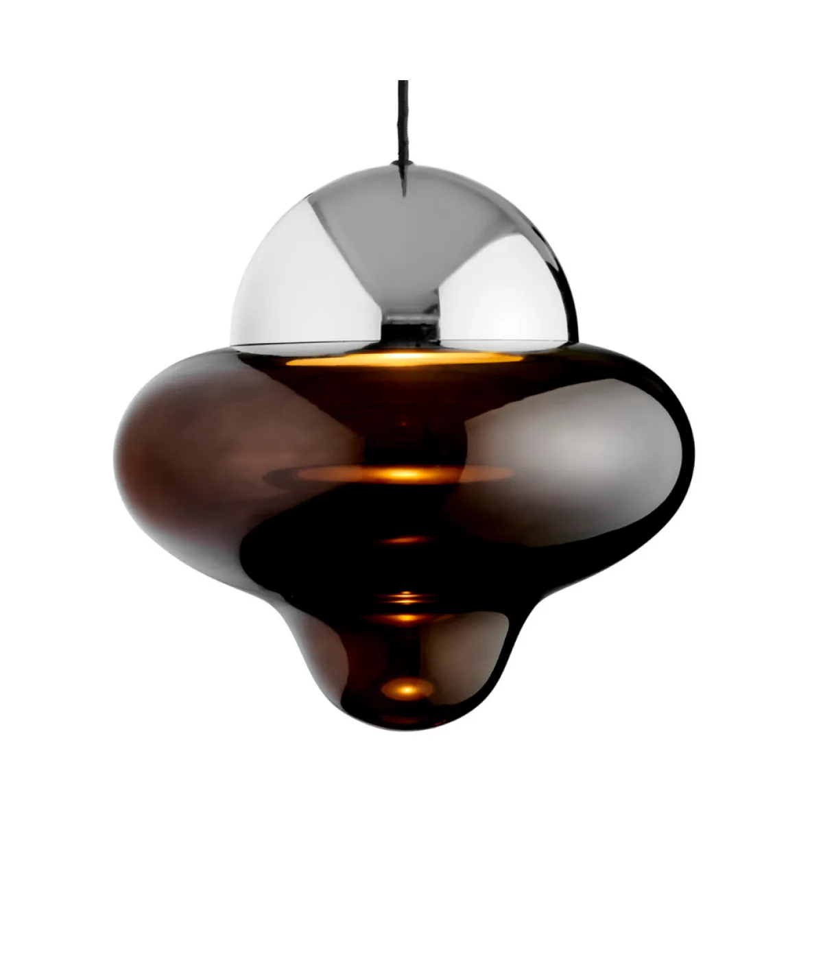 Nutty takpendel fra Design By Us er en vakker og iøyenfallende takpendel i glass. Du kan velge oppheng i sort, messing eller sølv så du finner den kombinasjonen som passer perfekt for deg. De har her brukt eikenøtten som inspirasjon til denne nye lampen. Den er litt nøtteaktig, og det er derfor de kaller denne nye taklampen Nutty. Denne lampen har integrert LED. Pendelkolleksjonen er basert på to størrelser, Nutty & Nutty XL.
