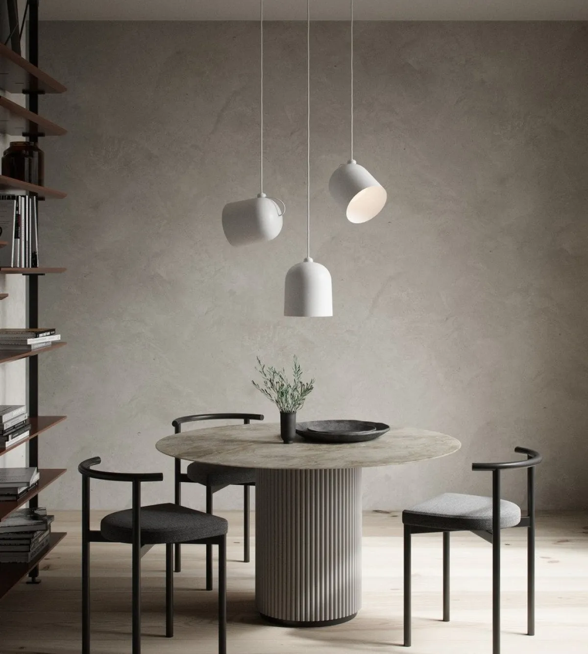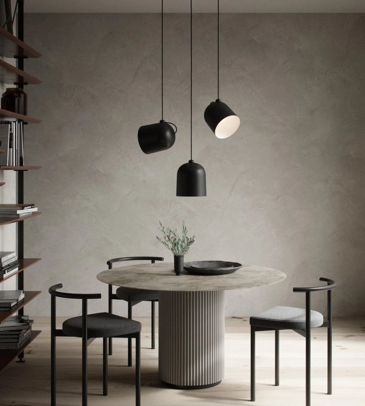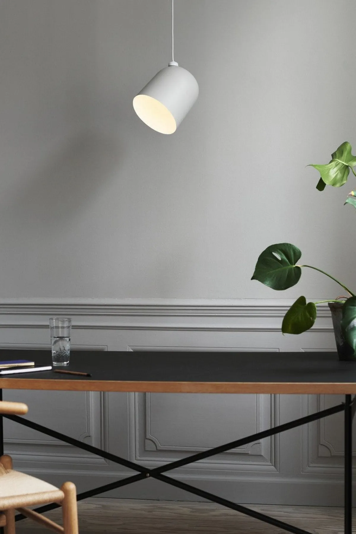 Angle har ett moderne design med et industrielt, men minimalistisk utseende. Den spesielle egenskapen ved pendelen er evnen til å lede lyset i ønsket retning med den monterte magneten på tekstilkabelen. Lampen er tilgjengelig i svart, hvit grå og gråt og ser bra ut med flere klynget sammen, vinklet annerledes. Det gir et fint uttrykk og legger til litt ekstra atmosfære i rommet.