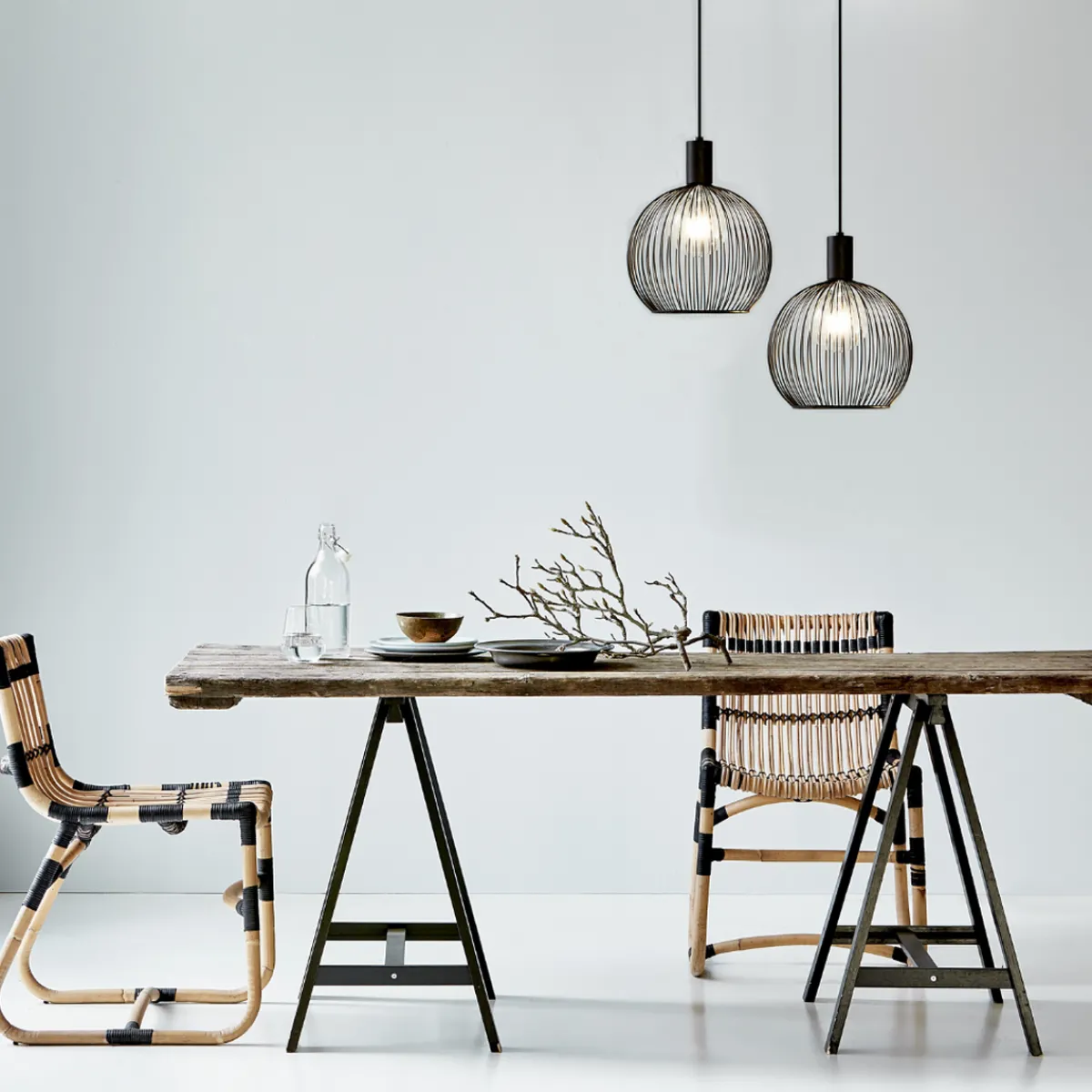 Aver er en pendel som bryter med tradisjonen. Med en synlig lyspære bak buede metalltråder gir et vakkert lys og en interessant refleksjon. Konstruksjonen er enkel, estetiske og støttes av den rå kraften av metallet. Dette summerer til en sterk visuell design erfaring og et anheng som bringer en unik liv til rommet.