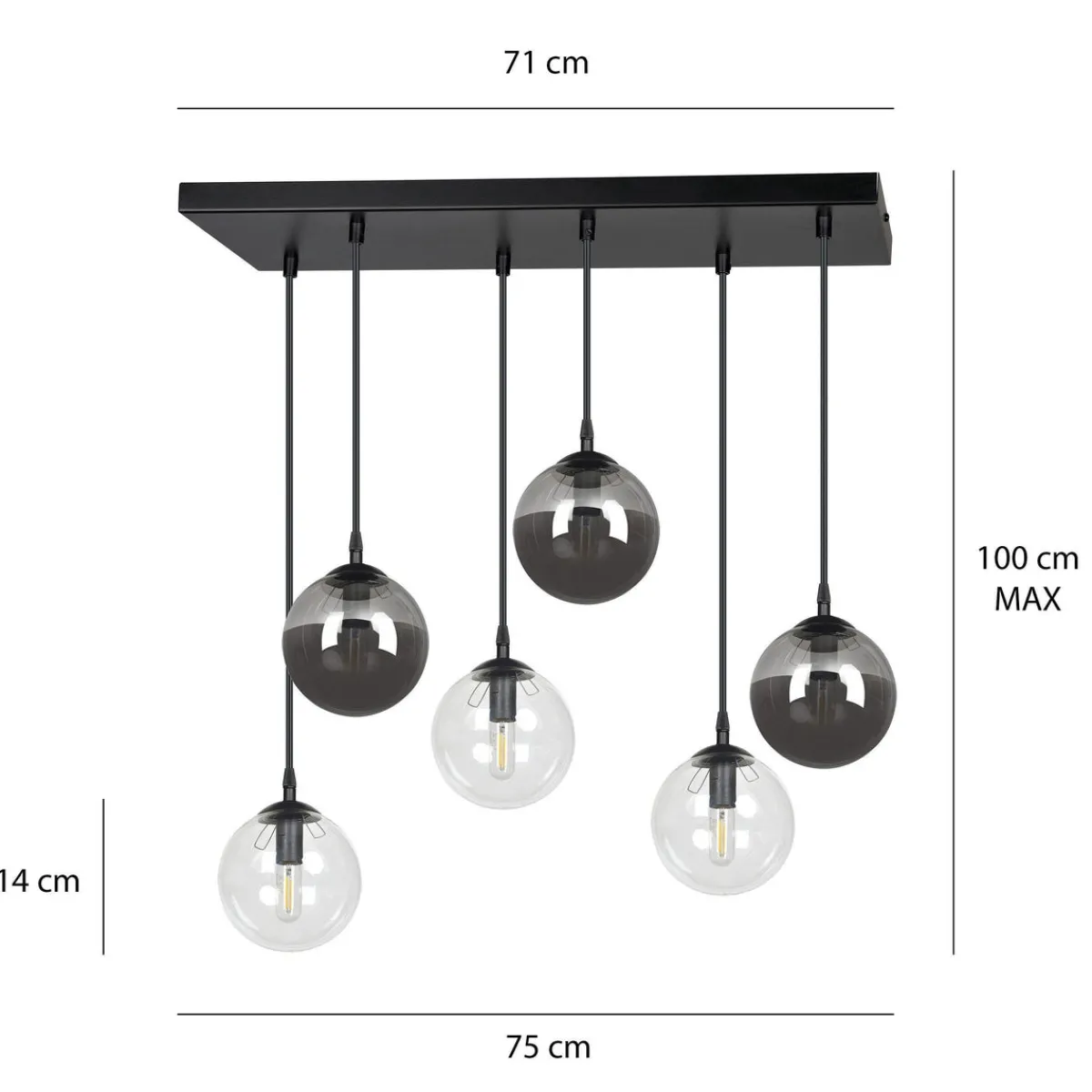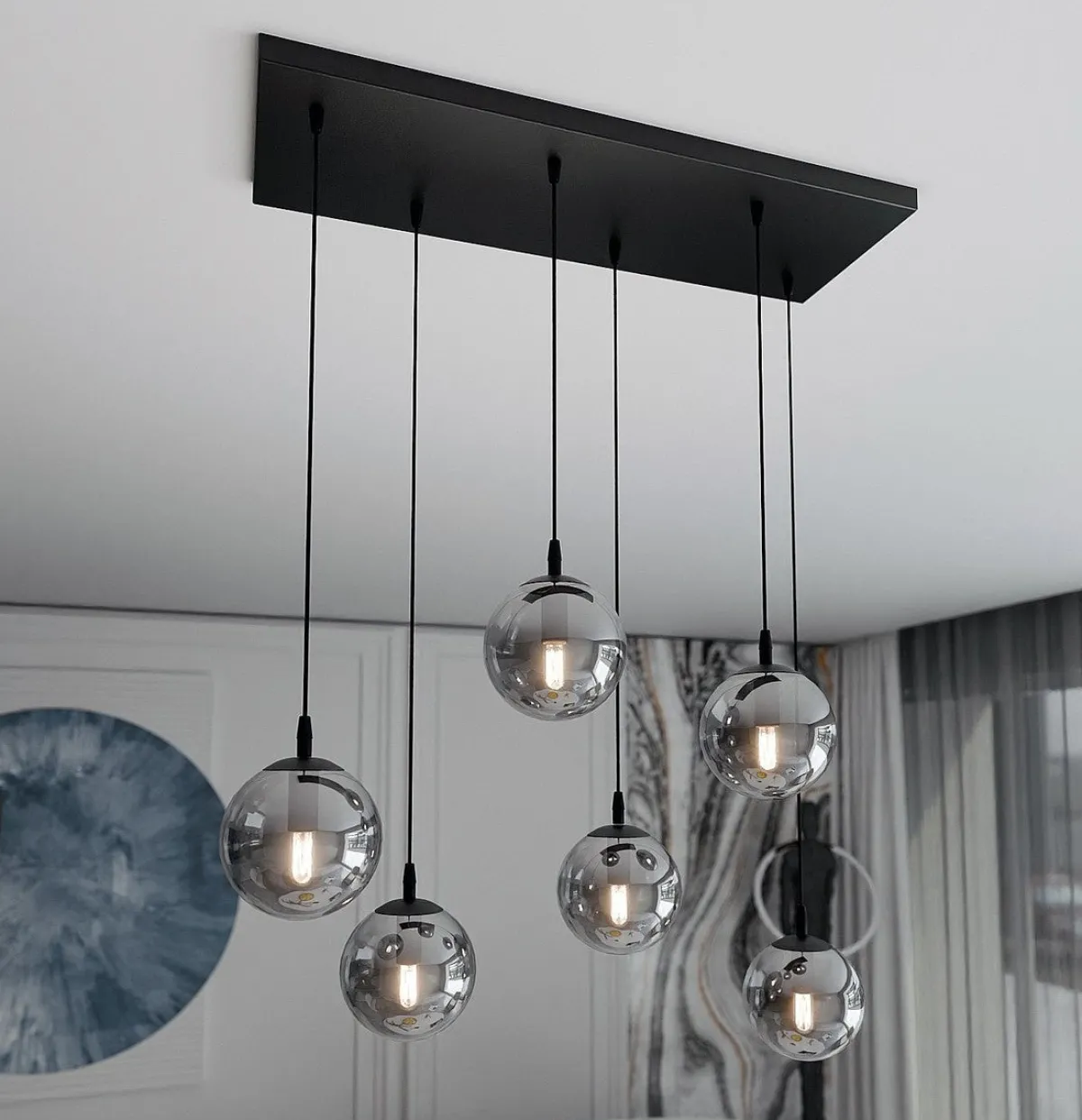 Cosmo er en nydelig pendelserie, som blant annet finnes som 1, 2, 3, 4, 6 eller 9 lys. Modellen er i fargen sort og kan velge mellom klart-, røykfarget- eller amberfarget glass.
