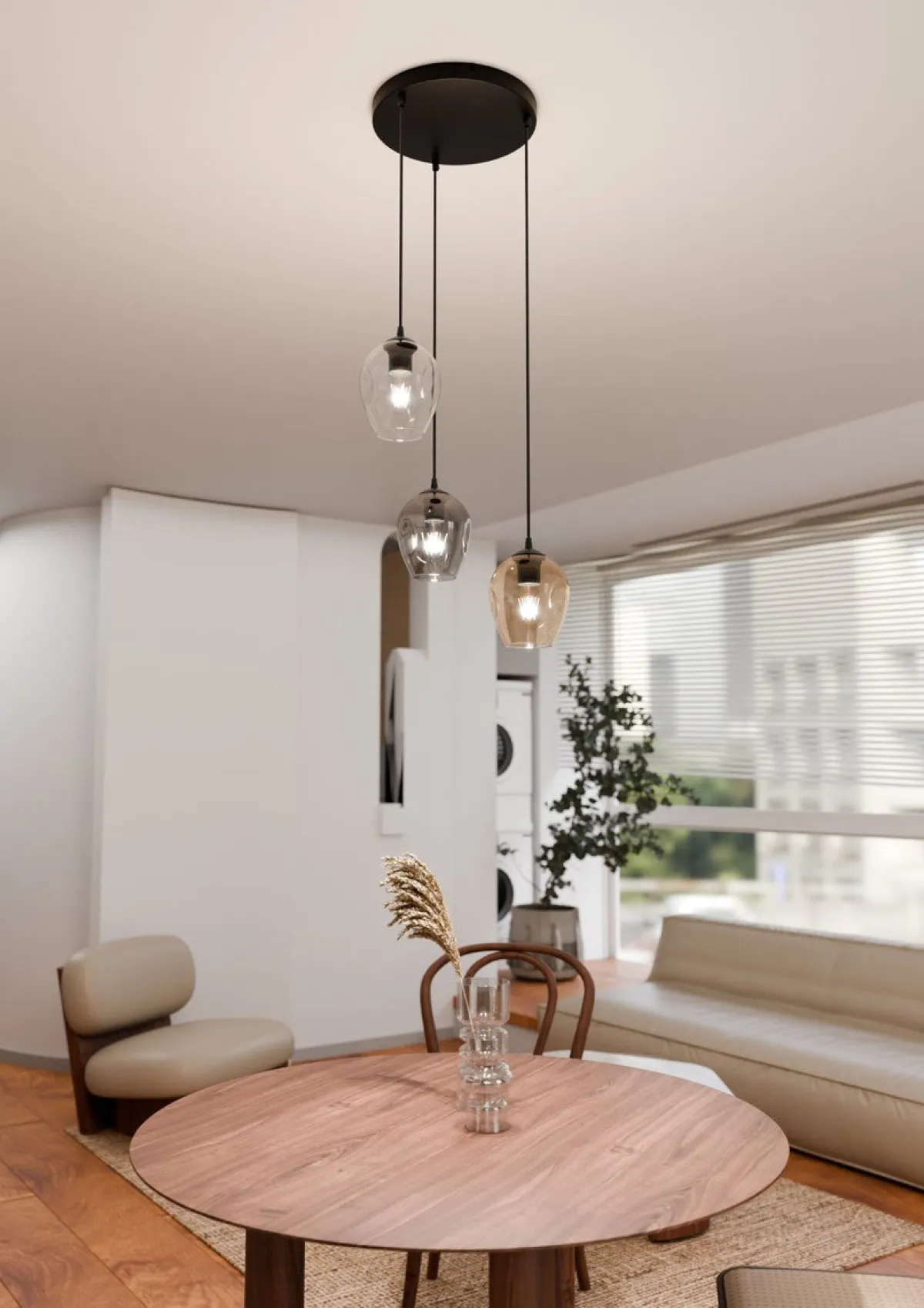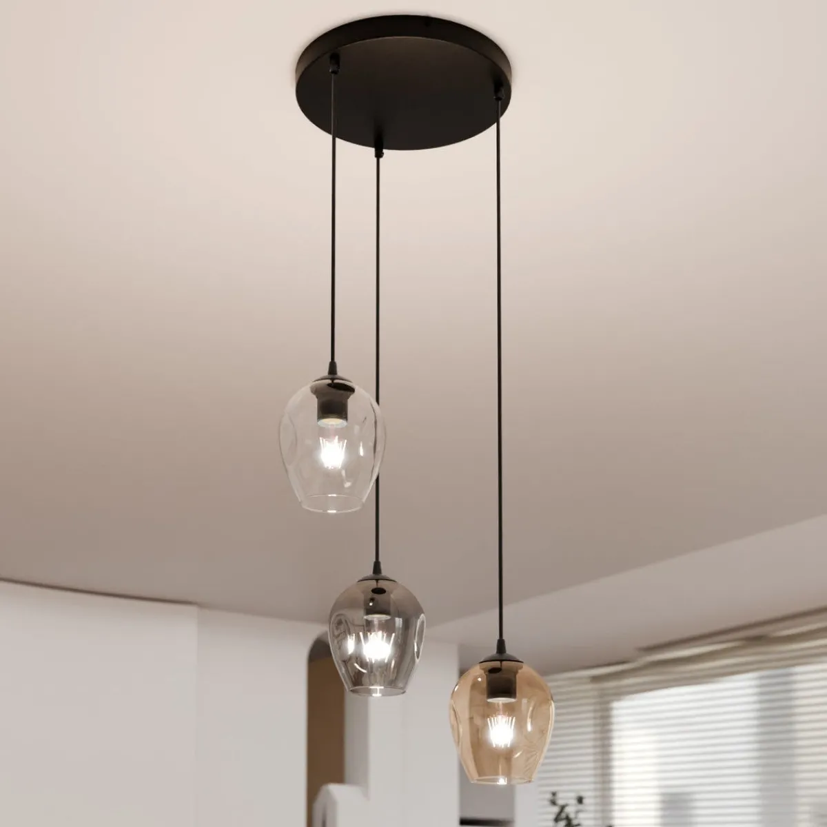 Istar er en nydelig pendelserie, som blant annet finnes som 3 eller 4 lys. Modellen er i fargen sort og kan velge mellom klart-, røykfarget- eller amberfarget glass.