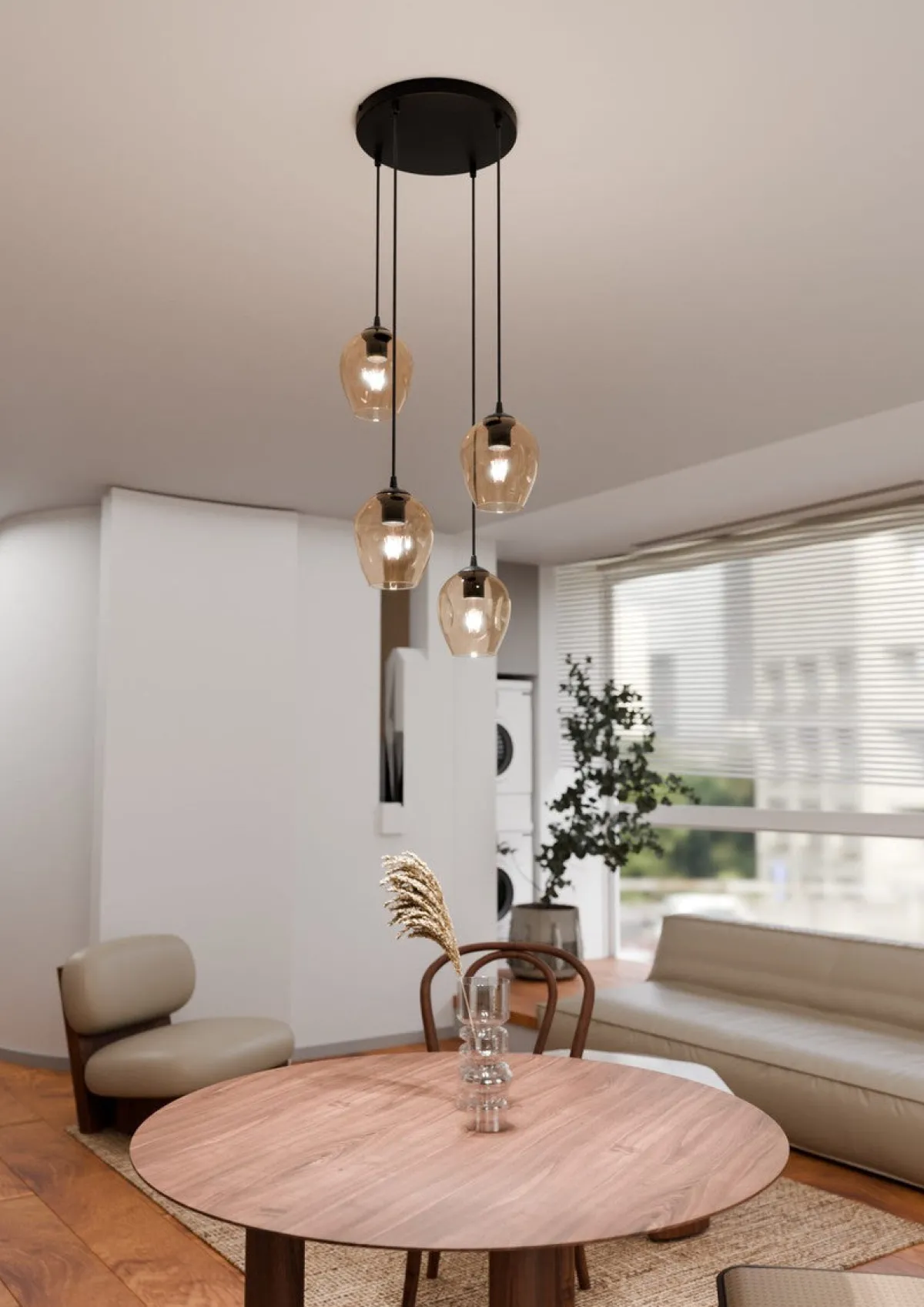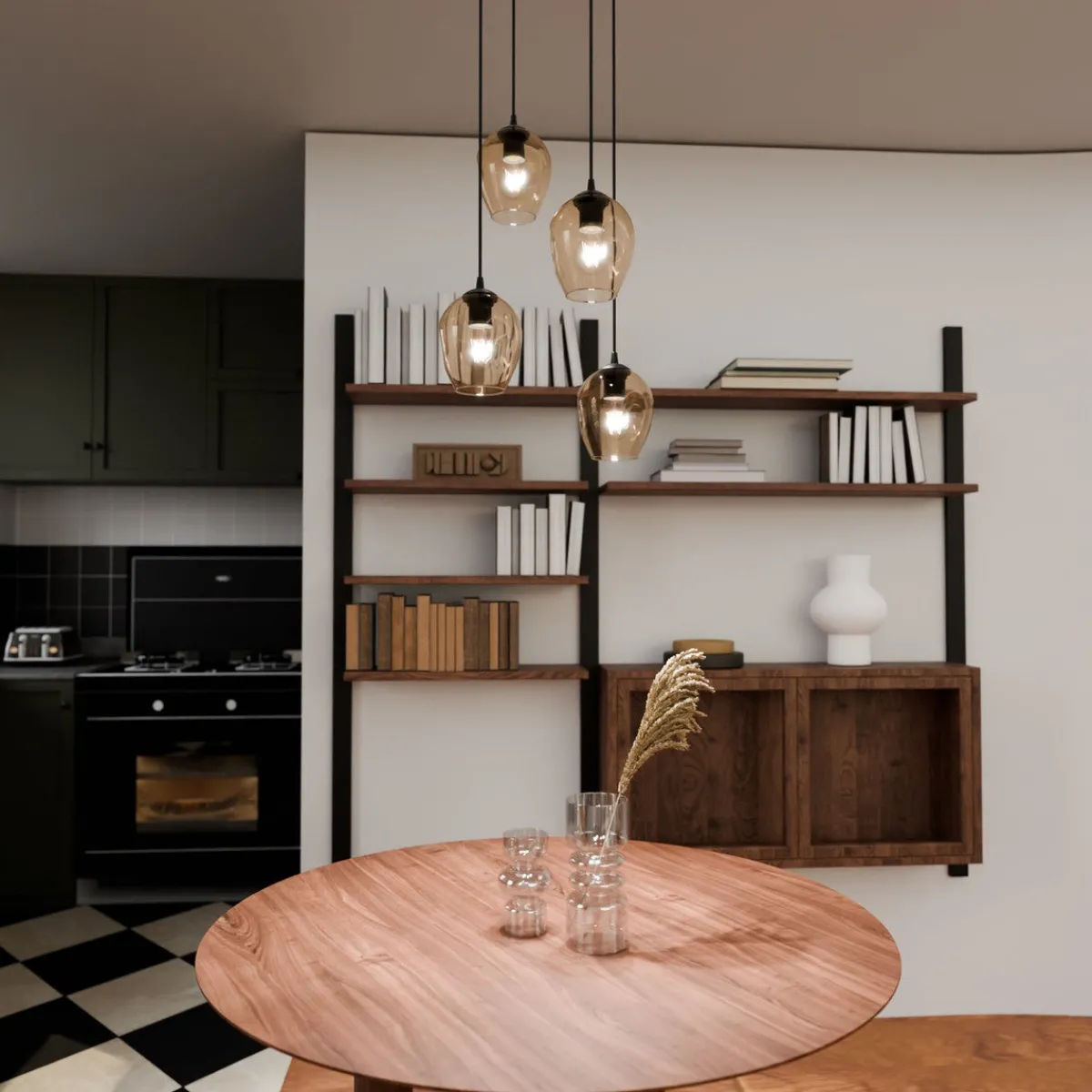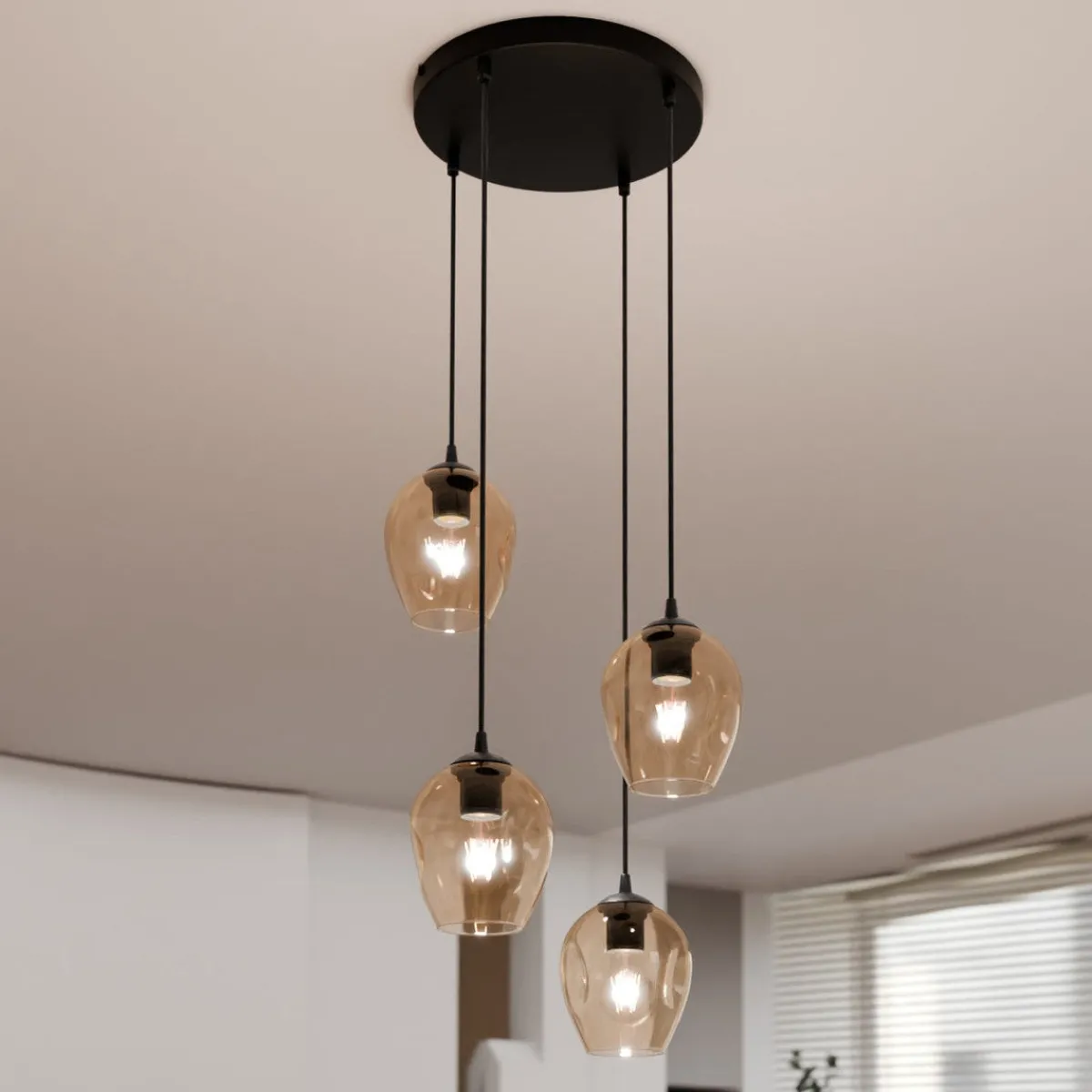 Kjøkkenbelysning Tak|Takpendler>Emibig Istar rondell takpendel 4 lys – Svart/Amberfarget Svart / Amber