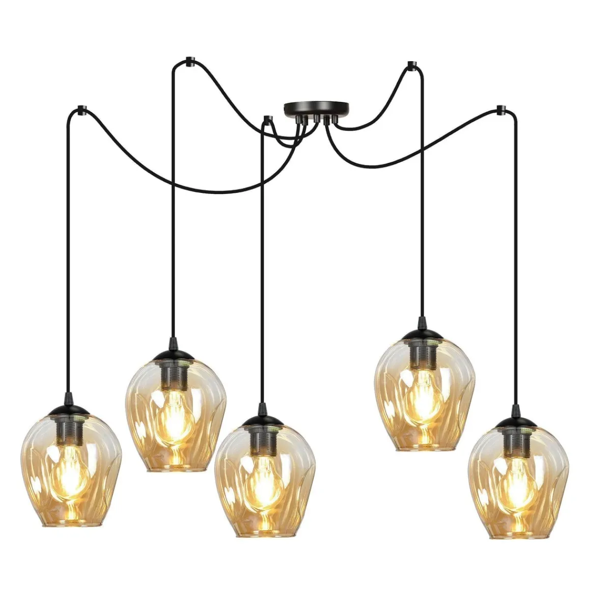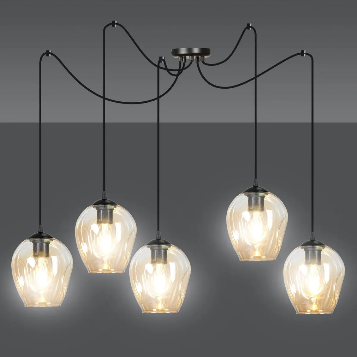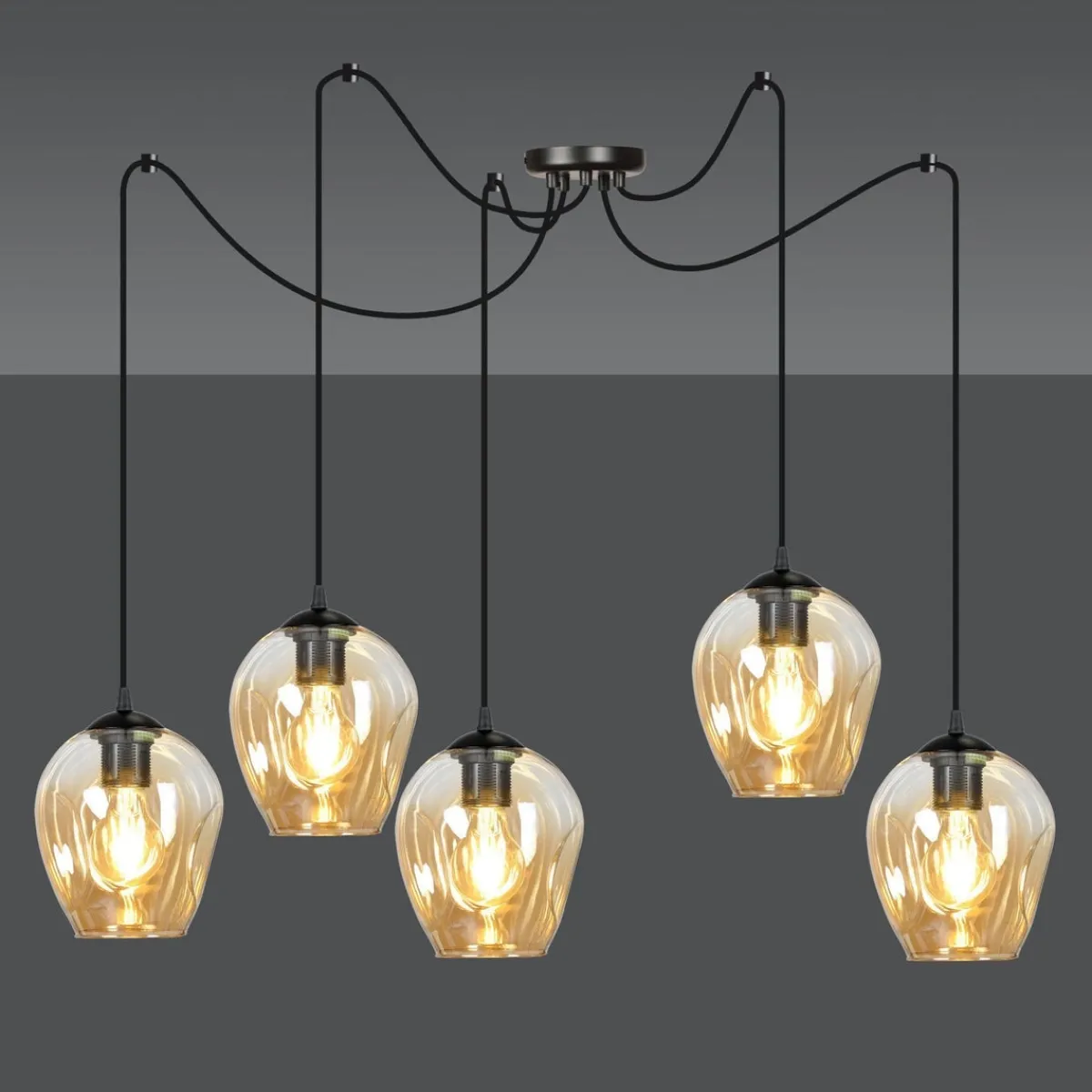Kjøkkenbelysning Tak|Takpendler>Emibig Level takpendel 5 lys – Svart/Amberfarget Svart / Amber