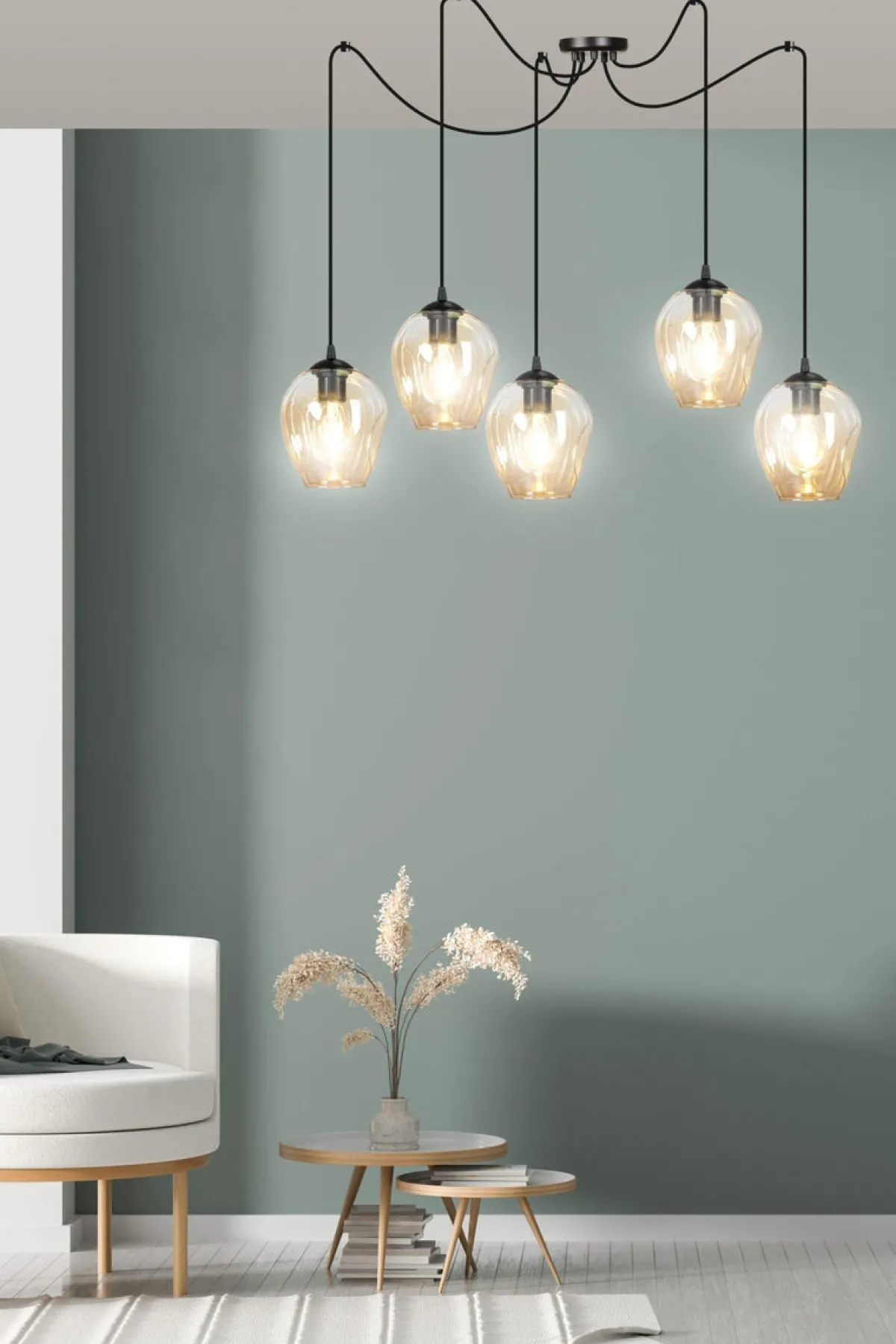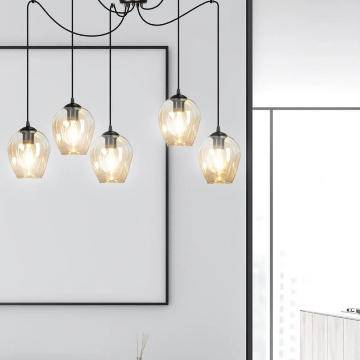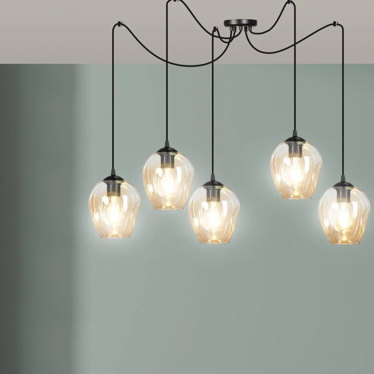 Kjøkkenbelysning Tak|Takpendler>Emibig Level takpendel 5 lys – Svart/Amberfarget Svart / Amber